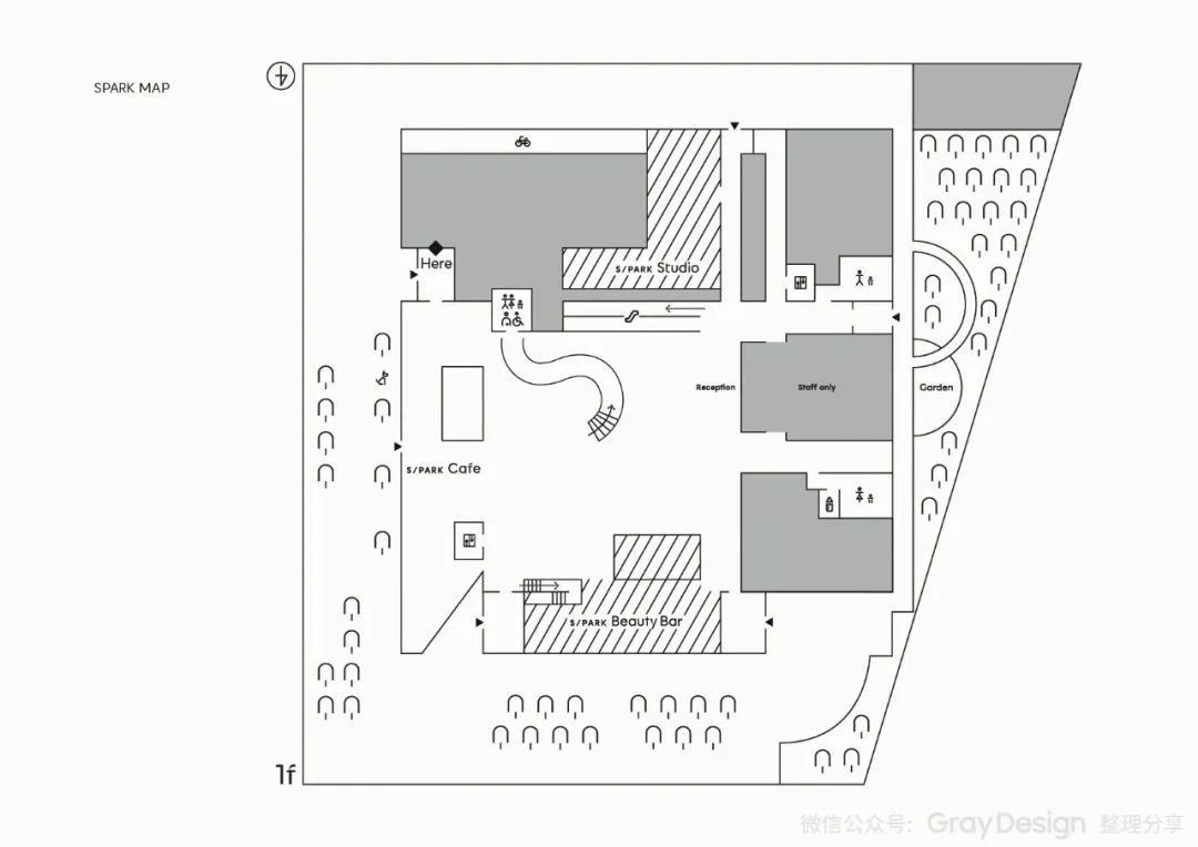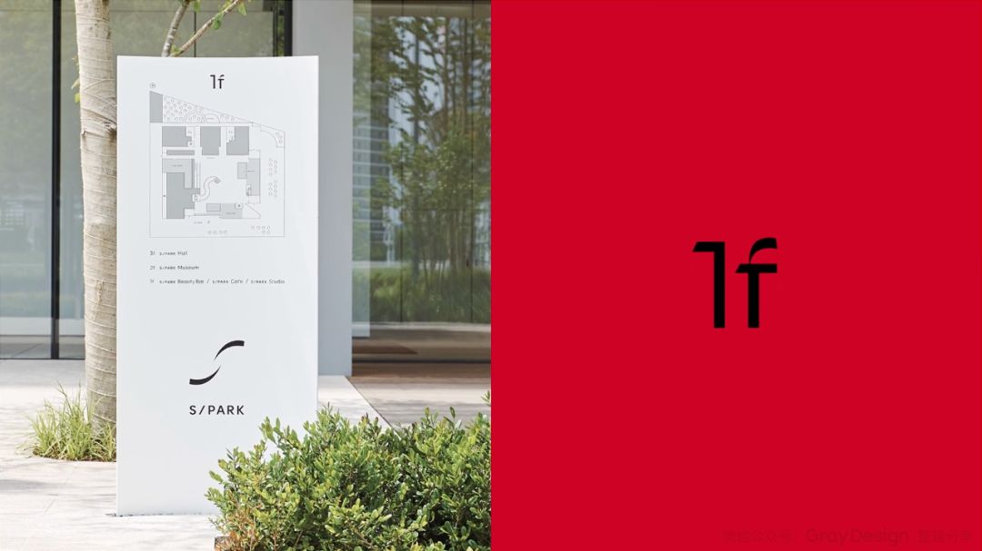 还有S/PARK美容体验中心的导视系统,也遵循品牌整体极致的设计风格,细节的处理也非常地到位: