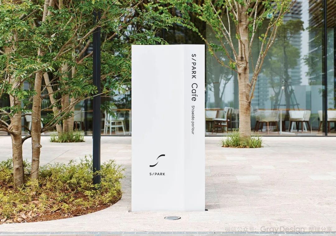 将资生堂品牌标志性汉字「美」中提炼的笔画作为品牌延伸图形,并直接应用于S/PARK品牌延展设计,成为品牌的核心视觉资产: