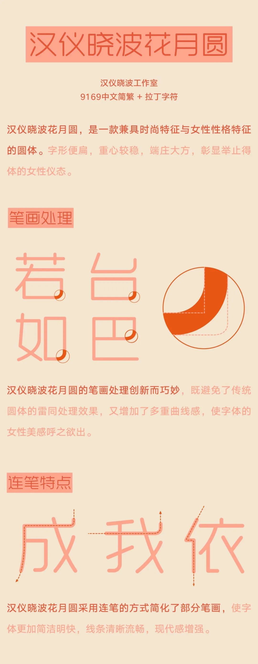 另一款是汉仪晓波花月圆,笔画偏细,很适合用在时尚感的设计中。