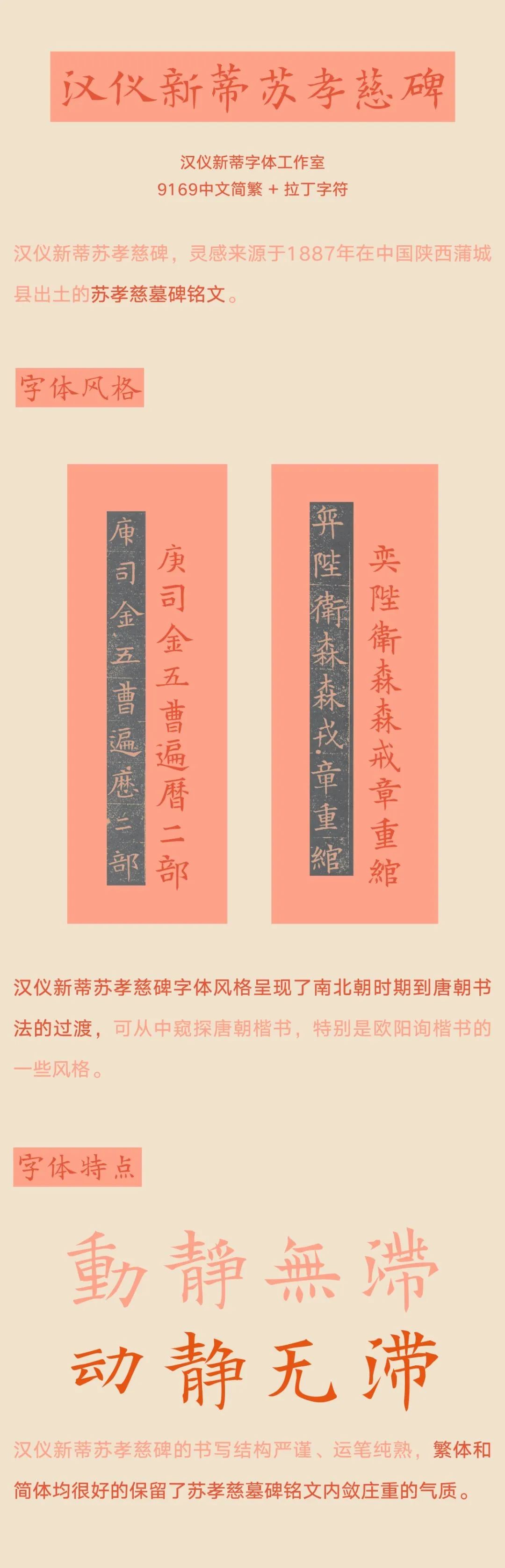这次新上的是汉仪新蒂苏孝慈碑,灵感源自1887年出土的苏孝慈墓碑铭文。