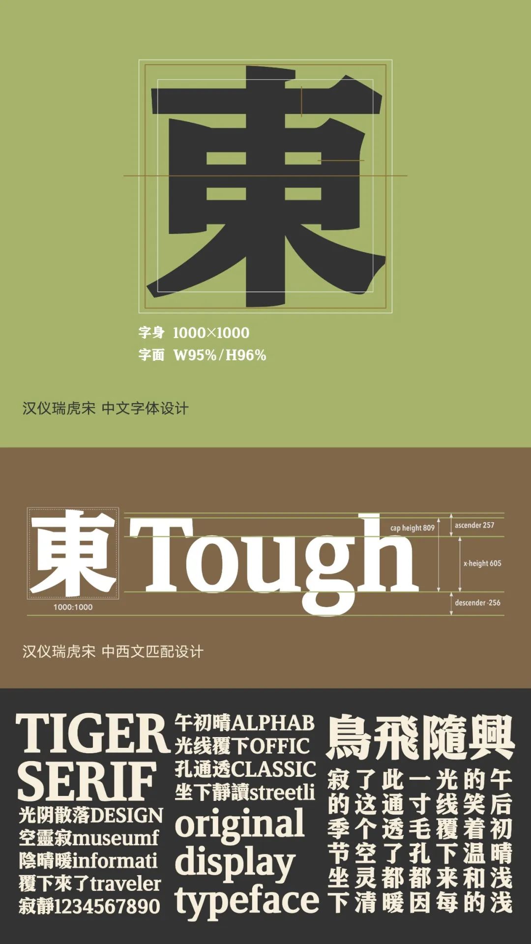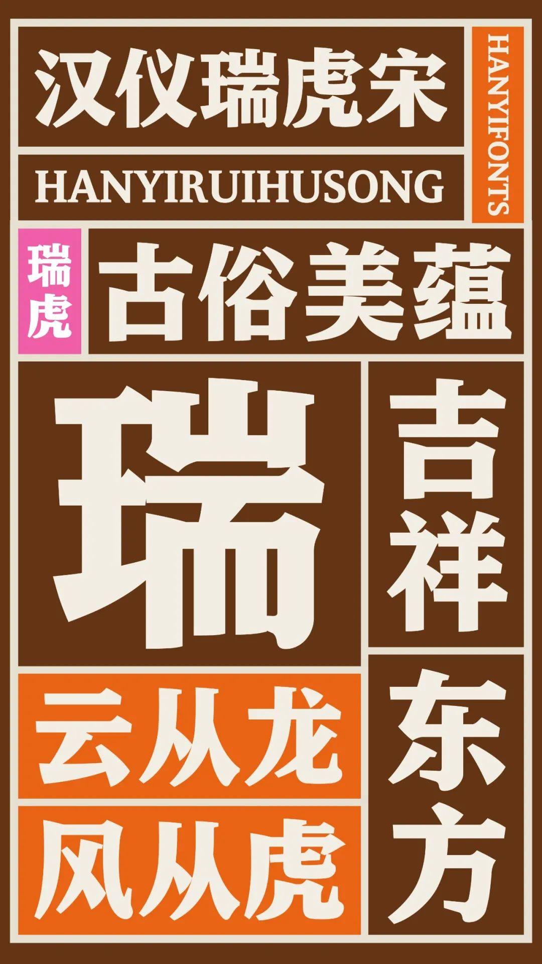 汉仪瑞虎宋则是一种厚重、强大的霸气全开,就像字体名字的“虎”一样。