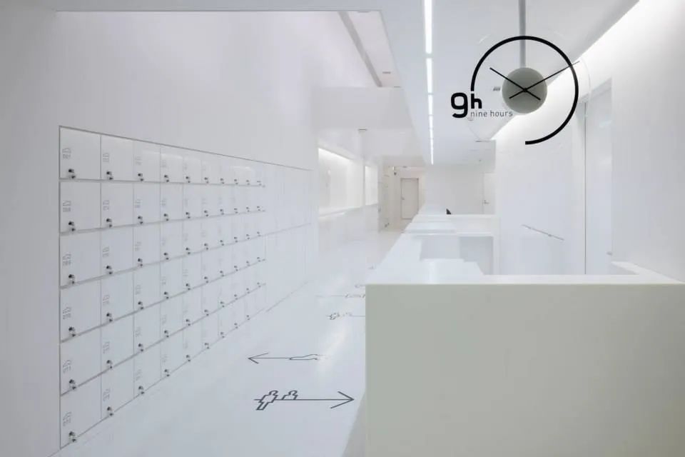 咨询前台、索取房间钥匙、淋浴、进入胶囊房间