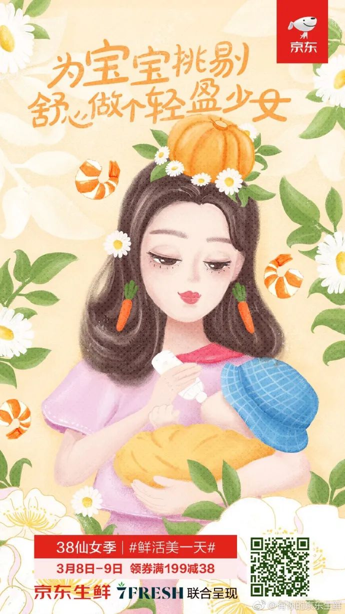 3月8日女神节近在咫尺,设计师已经在磨刀霍霍了,趁时间还来得及,葱爷也赶紧整理了一大波不错的女神节热点海报,希望能给你们提供一点灵感。今年的女神节比较特殊,全国都还处在防控新冠疫情中,所以,把女神节与抗“疫”相结合应该会是一个很主流的方向。比如致敬白衣战士当中的女医生、护士群体;比如致敬长达两三个月时间,既要做家务、陪孩子玩耍,又要陪孩子上网课的妈妈群体;比如调侃刚过了云情人节,又得过云女神节的女生等等。海报设计中最重要的就是视觉主体,很多人拿到设计需求或文案后迟迟都无从下手,因为他们不知道该怎样设计画面的主视觉,其实,作为女神节海报的主体无非就是以下几大类,你可以根据你们产品的特性和文案来选择一种最适合的方式。这种形式的画面,文字通常会占比较大的版面空间,而不是仅仅指画面中有人物和文字。当然不是仅仅把产品放上去就好,而是通过创意和设计,使产品具备女神节的属性。在产品的基础上增加一点插画,使画面变得更有趣/更漂亮、更贴合女神节的主体。