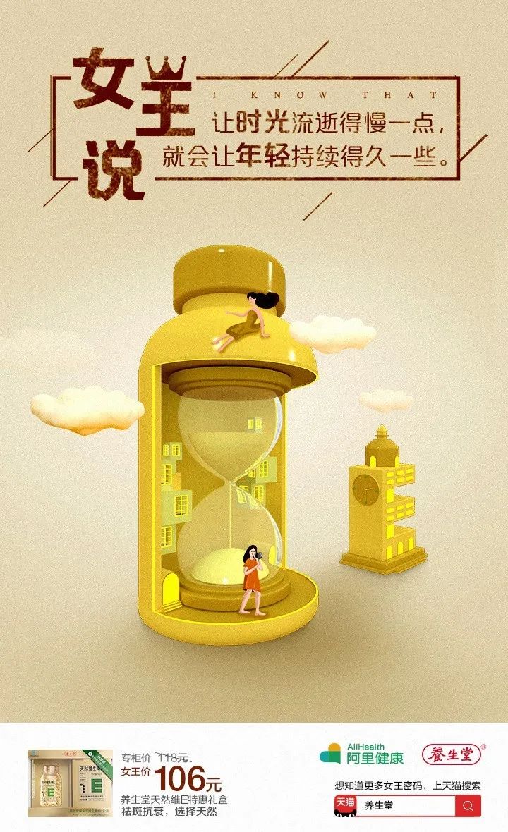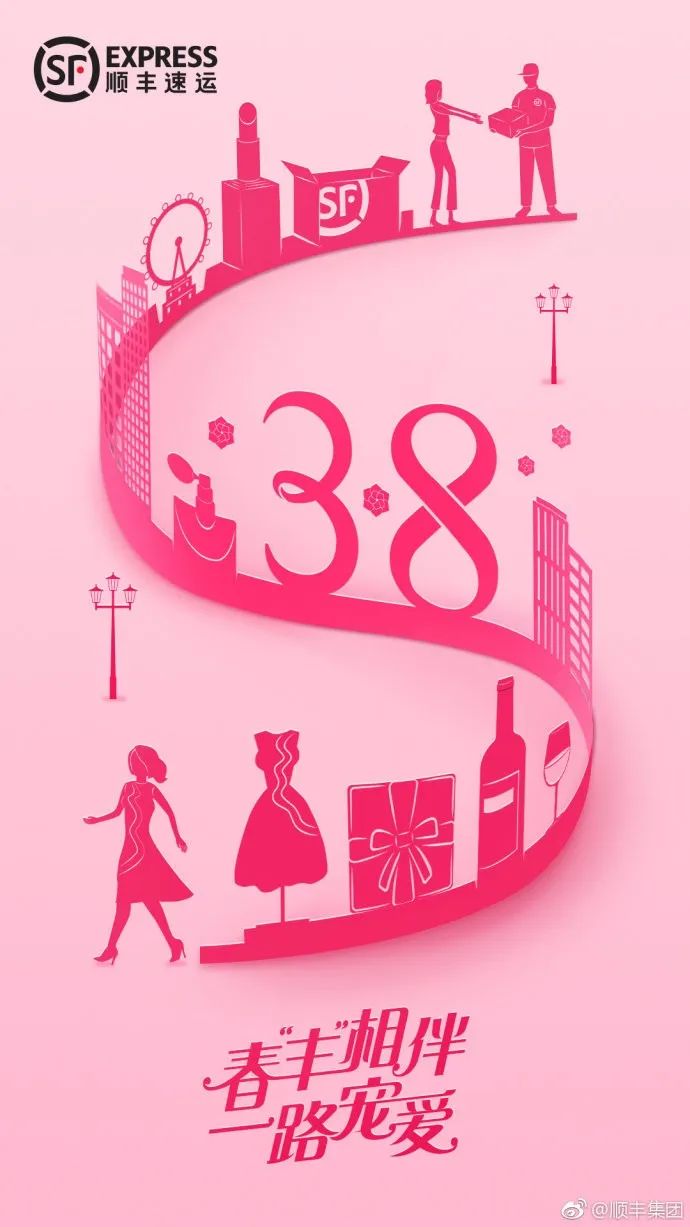 每年的女神节,这种海报是最多的,因为调性与女神节非常贴合。