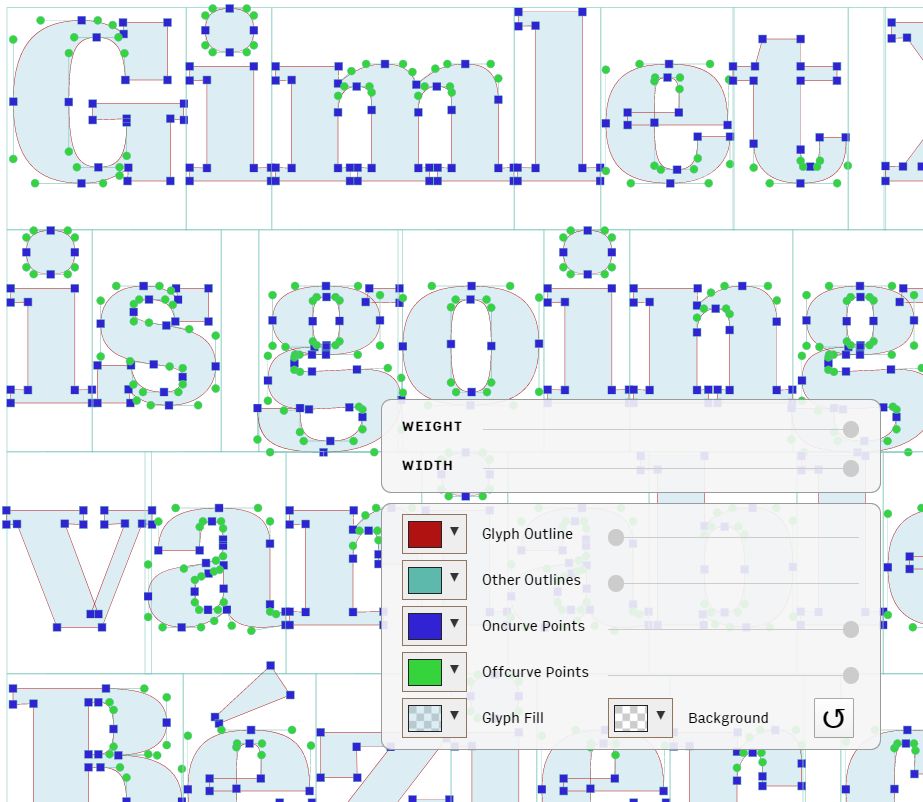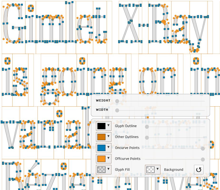 而字体设计师David Jonathan Ross则在上个月推出了Gimlet X-ray字体。这种字体极具实验性,它展示了可变字体的内部变化机制,人们可以拖动各种参数的轴线以感受字体的变化。具体应用请前往官网了解体验: