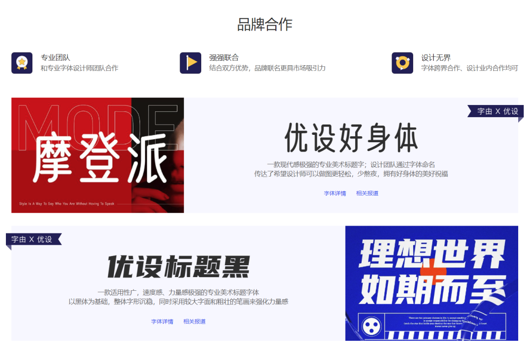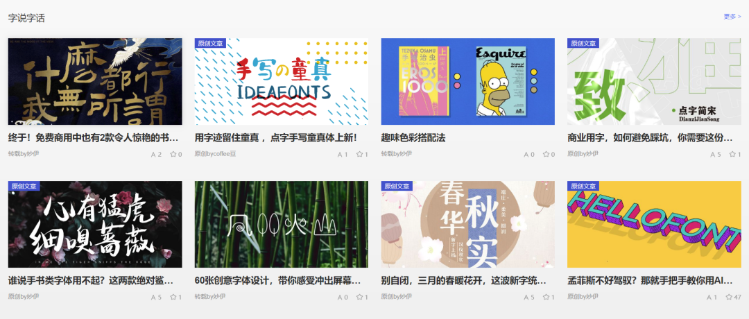 为了让字由用户,看到更丰富的内容,这次新官网首页,合并了重复的形式,加入了更多种类,比如字体案例~其它的内容板块,也更加少而精,只让你看最新的、最有用的。