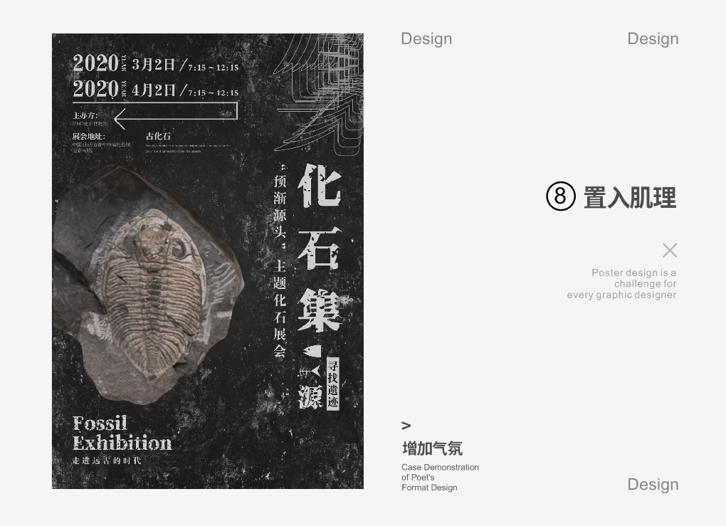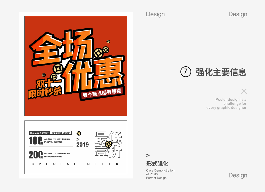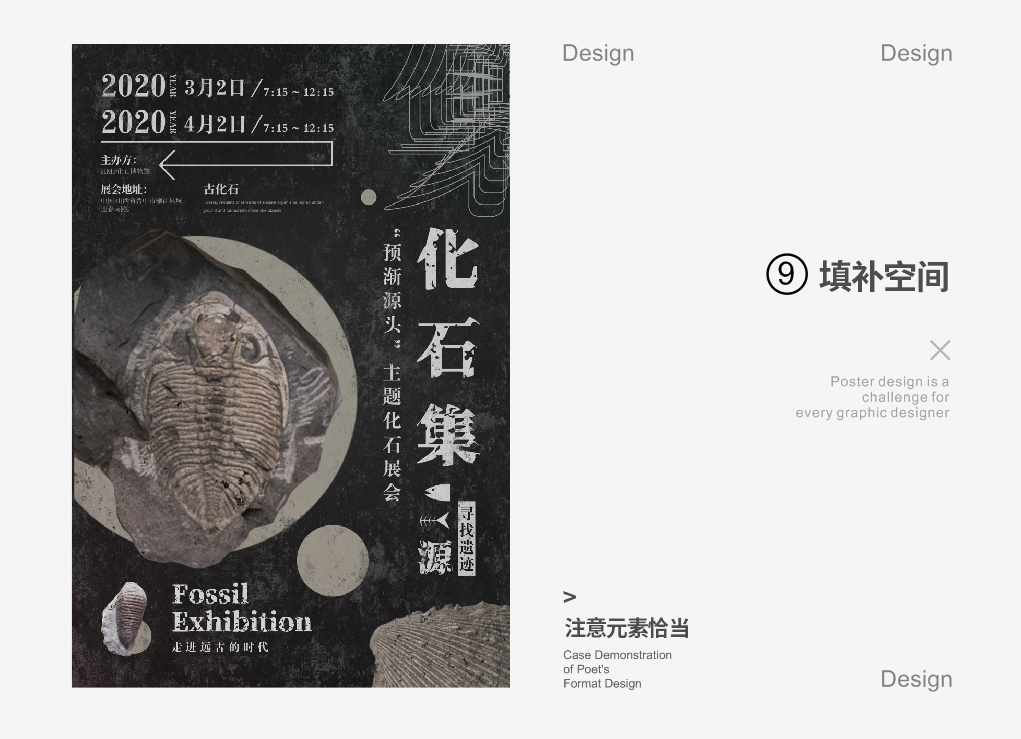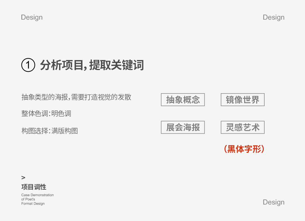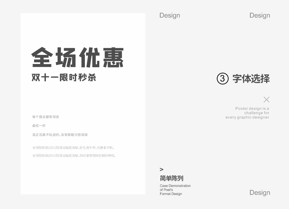 相信大家看了上面的演示后已经很有收获了,接下来再给大家演示别的字形在画面中的应用,帮助大家加深对于整体的理解,因为我们在设计海报的时候一定是多个知识综合在一起的,我们大家都多学习对自己有帮助的部分,给大家做细致的拆分也是为了让大家知道,如何把学到的知识直接转换到实际工作中去。