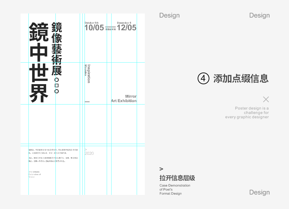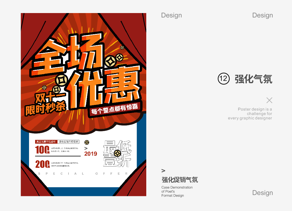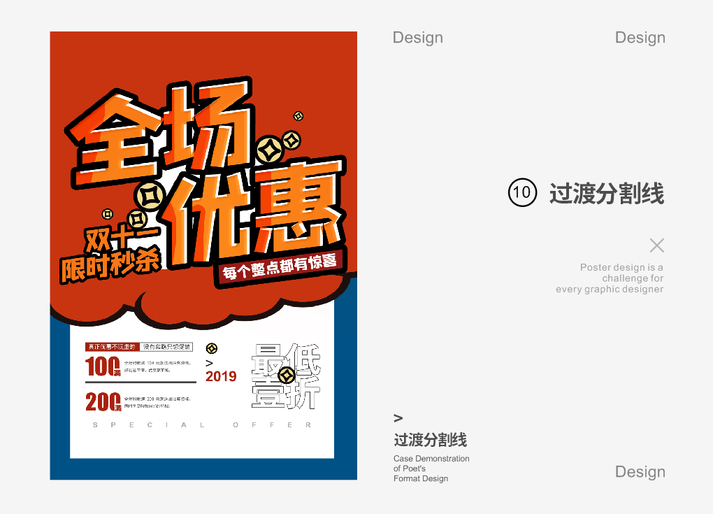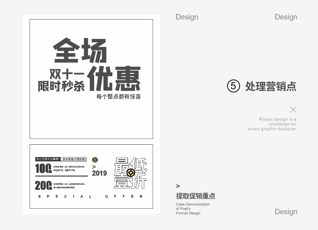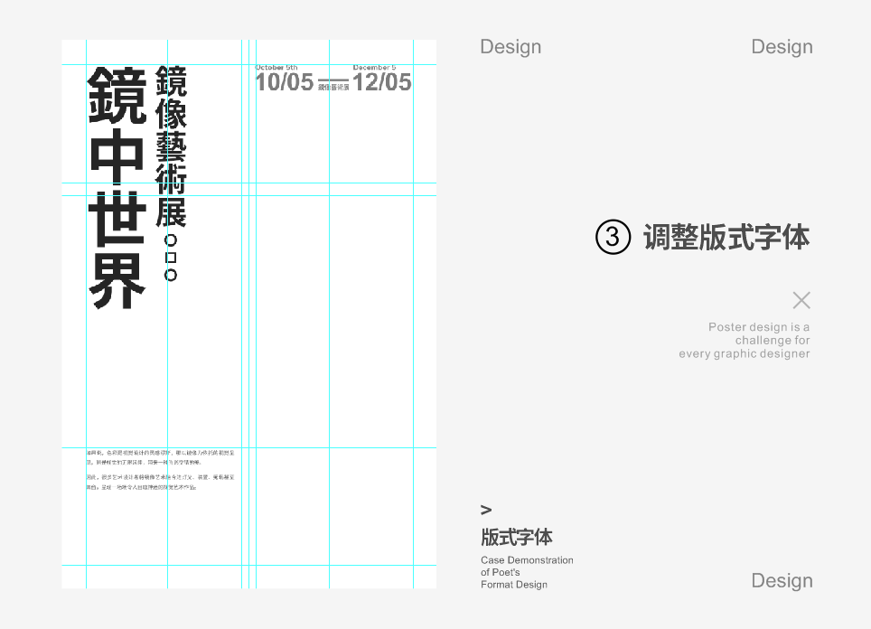 相信大家看了上面的演示后已经很有收获了,接下来再给大家演示别的字形在画面中的应用,帮助大家加深对于整体的理解,因为我们在设计海报的时候一定是多个知识综合在一起的,我们大家都多学习对自己有帮助的部分,给大家做细致的拆分也是为了让大家知道,如何把学到的知识直接转换到实际工作中去。