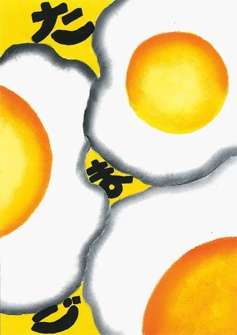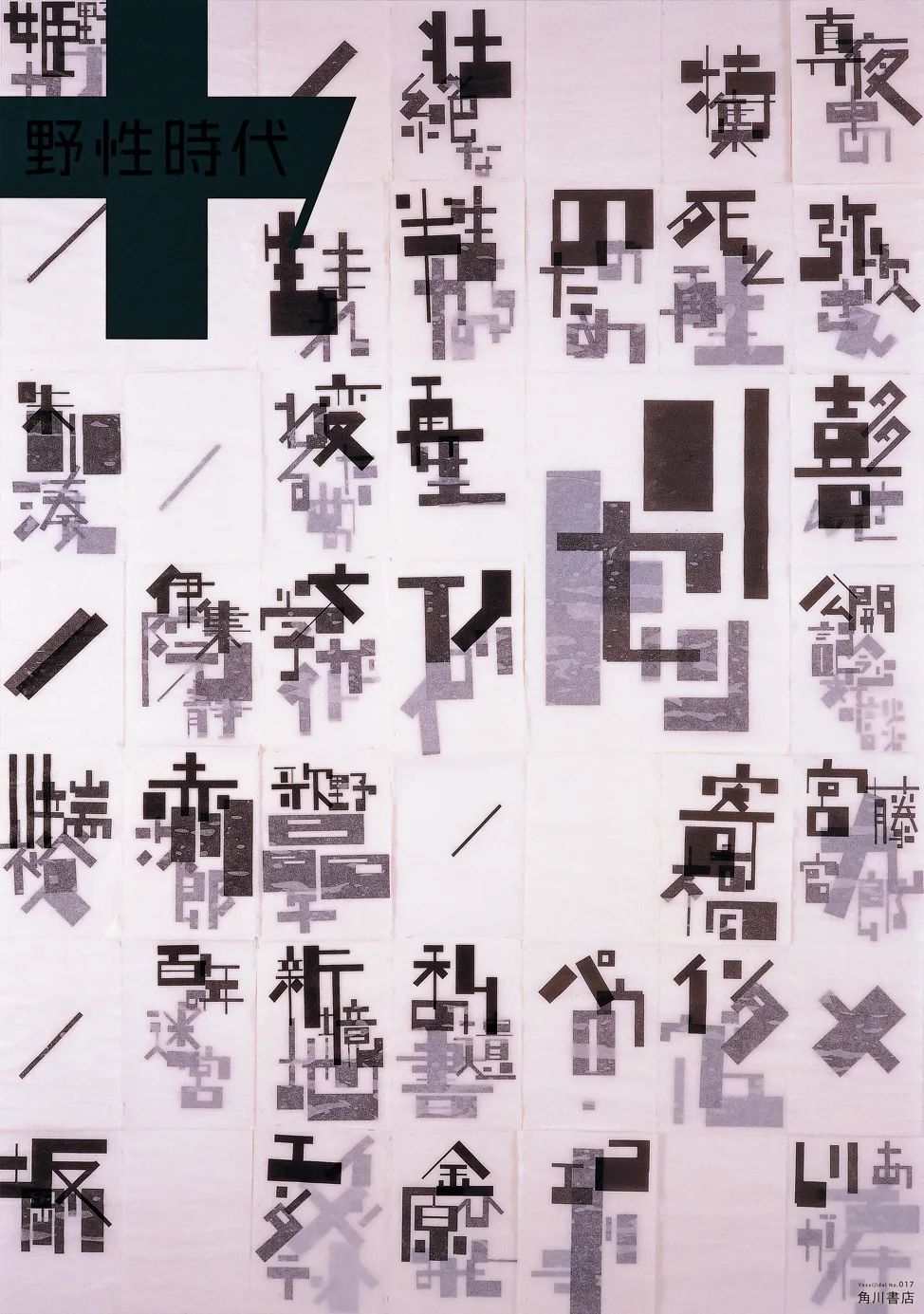 在这张海报中,新村则人将几张印有文字的宣纸重叠在一起,再刷上一层水,使宣纸变得透明,下面的文字就会从不同层数的宣纸后面透出来,呈现出深浅不一的视觉观感。虽然这种层次感用软件可以轻易实现,但在细节与质感上与手工制作有着云泥之别。