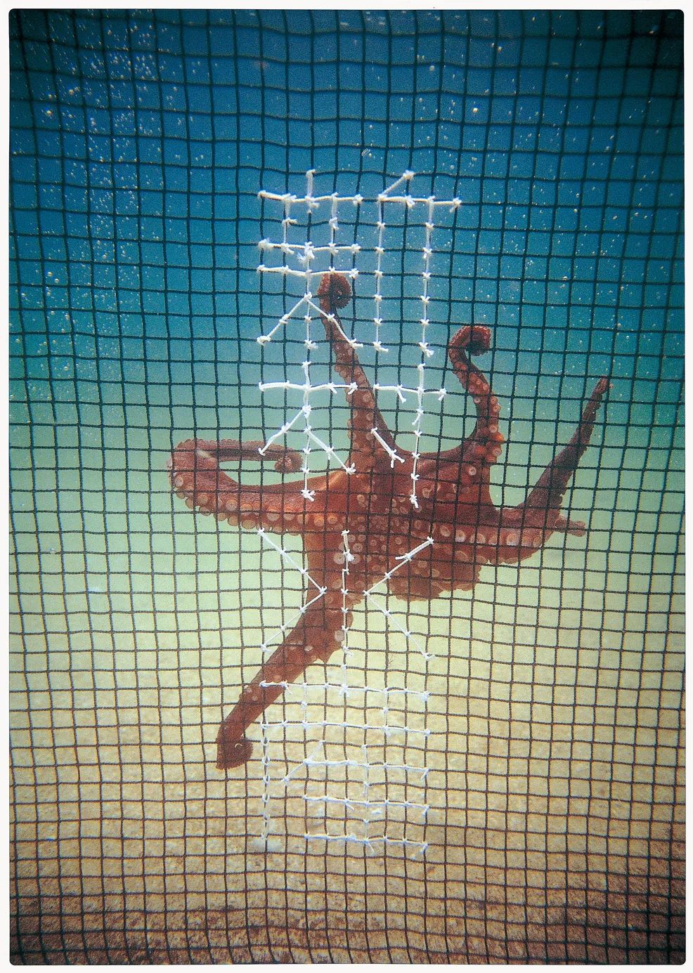 这一组的主题“网”,是新村则人在看到自己的父亲修补渔网时有感而发,生出的创作灵感。这里强调一下,本篇文章出现的所有疑似电脑合成的设计作品,都是实拍完成的。不过下面这一组海报的制作方式确实遭受过质疑。