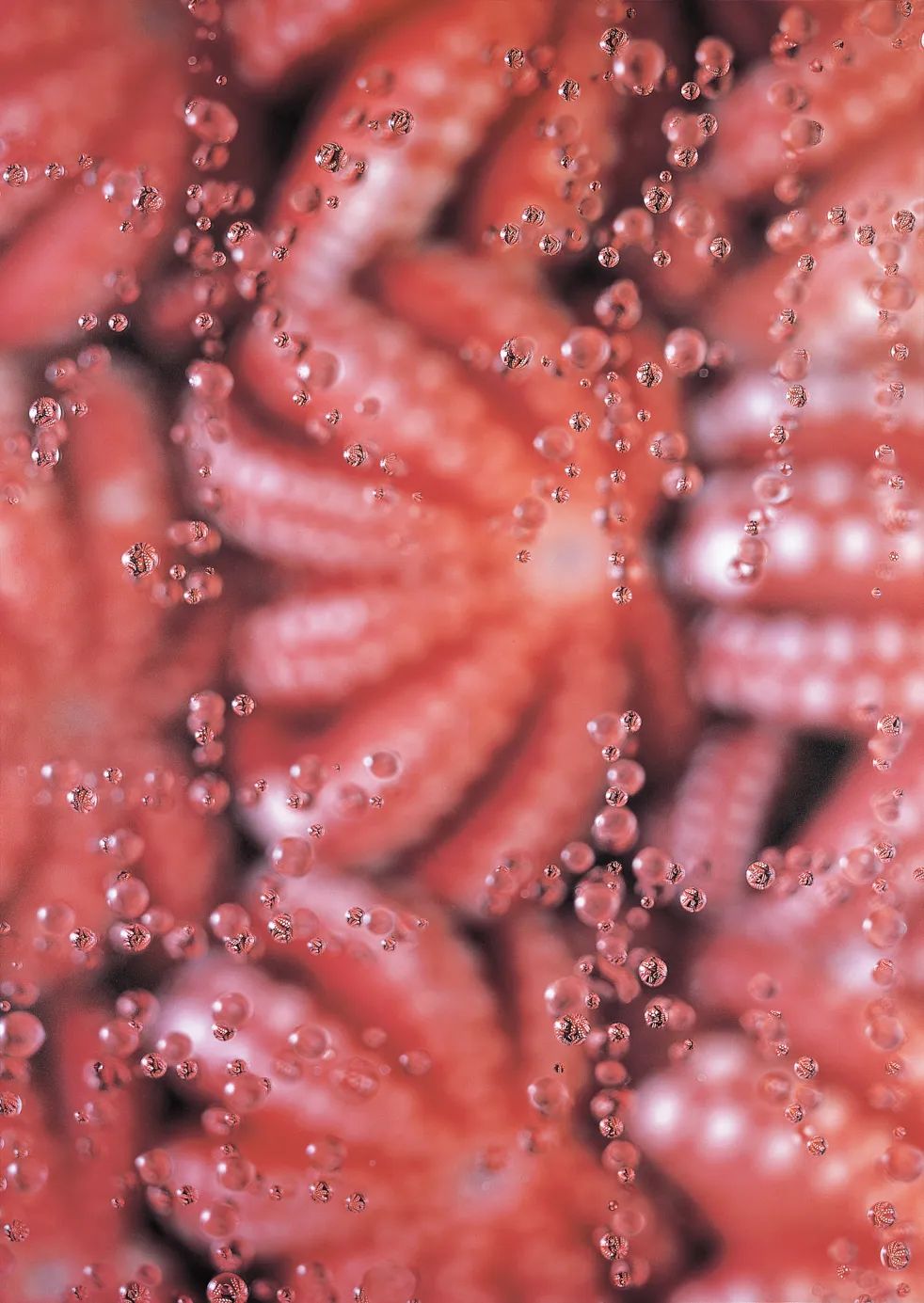 “水滴”,新村则人曾公开解释过这组海报的制作过程,将水产上方叠放三层玻璃,每一层都用水滴滴出“新村水产”的字样,然后在拍摄时将焦面对在第二层玻璃上,就能拍摄出这样的效果。建议放大观看。所以收起你们的高斯模糊,不要对手工狂魔的实力存有质疑。