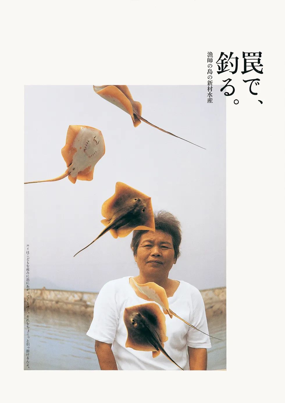 下面是新村则人为自己家的新村水产拍摄制作的一系列海报。你能从中感受到这种简单直接的设计力量。