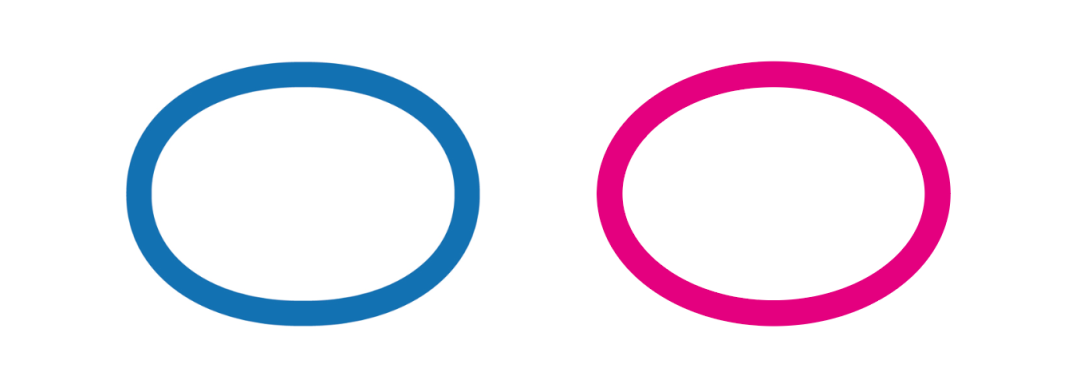 我在标志上面叠了一张品红色的椭圆,你会发现把圆压扁并不能与它完全重合,这个标志的曲率有经过特别的调整。