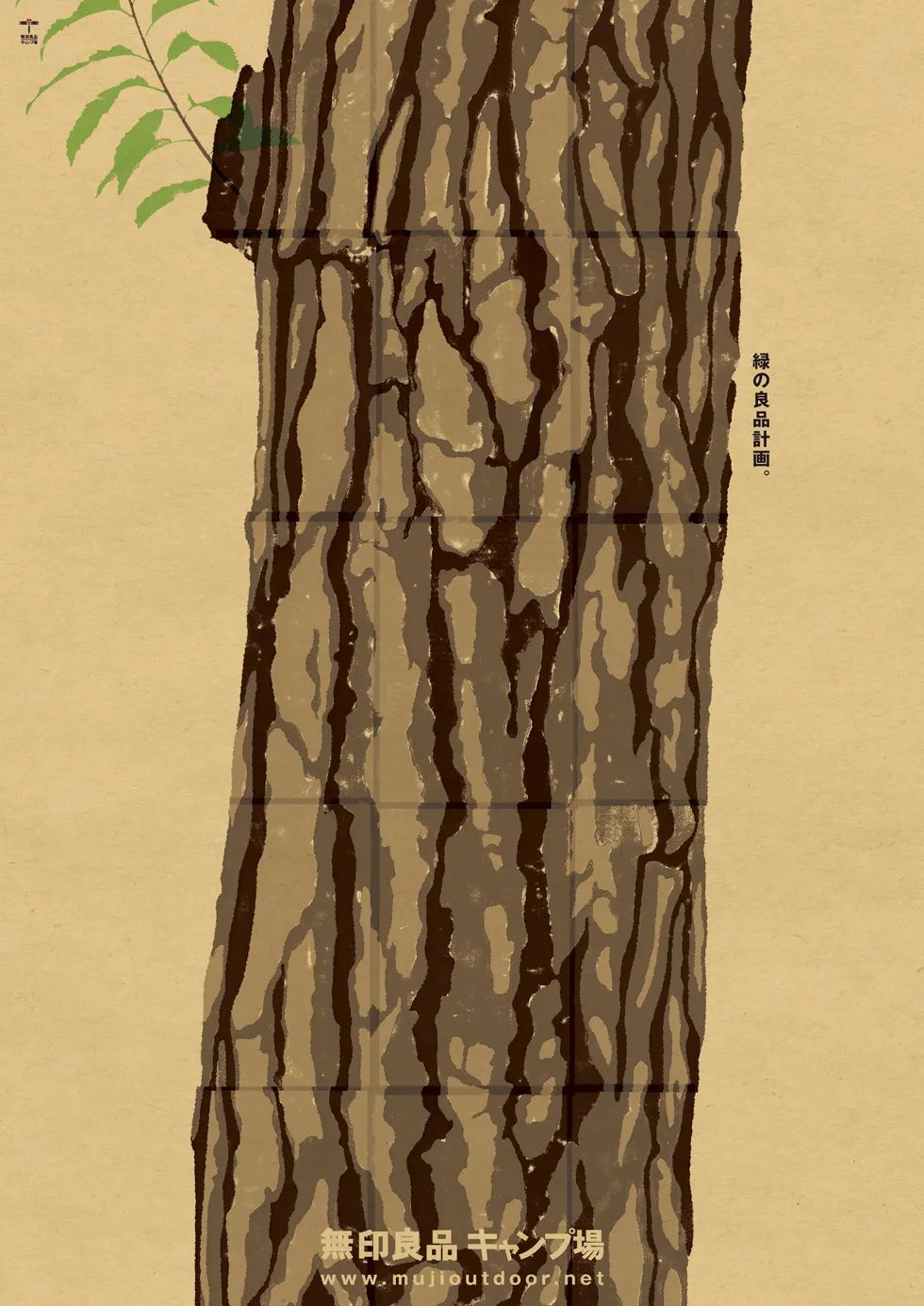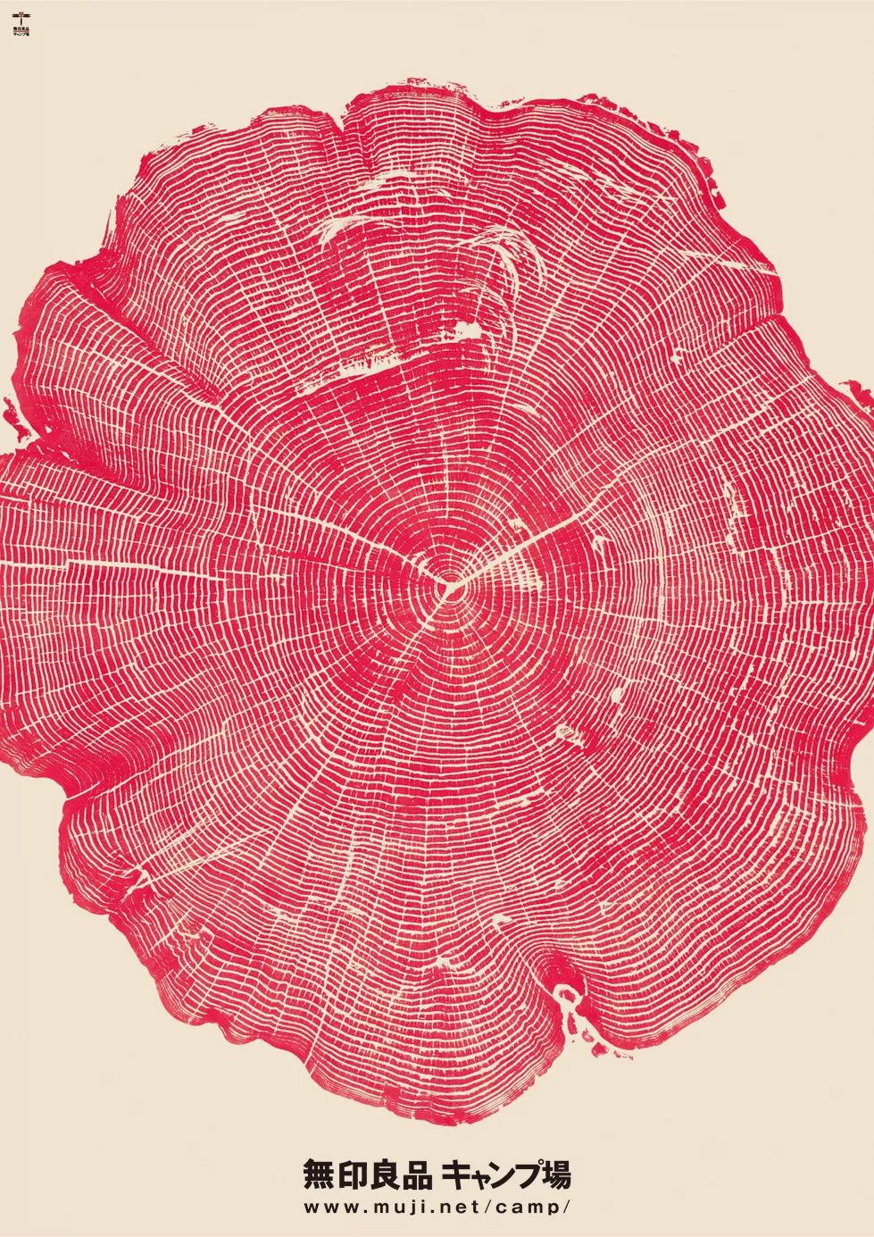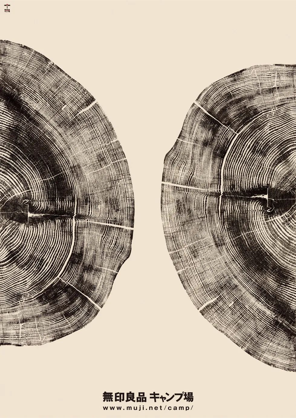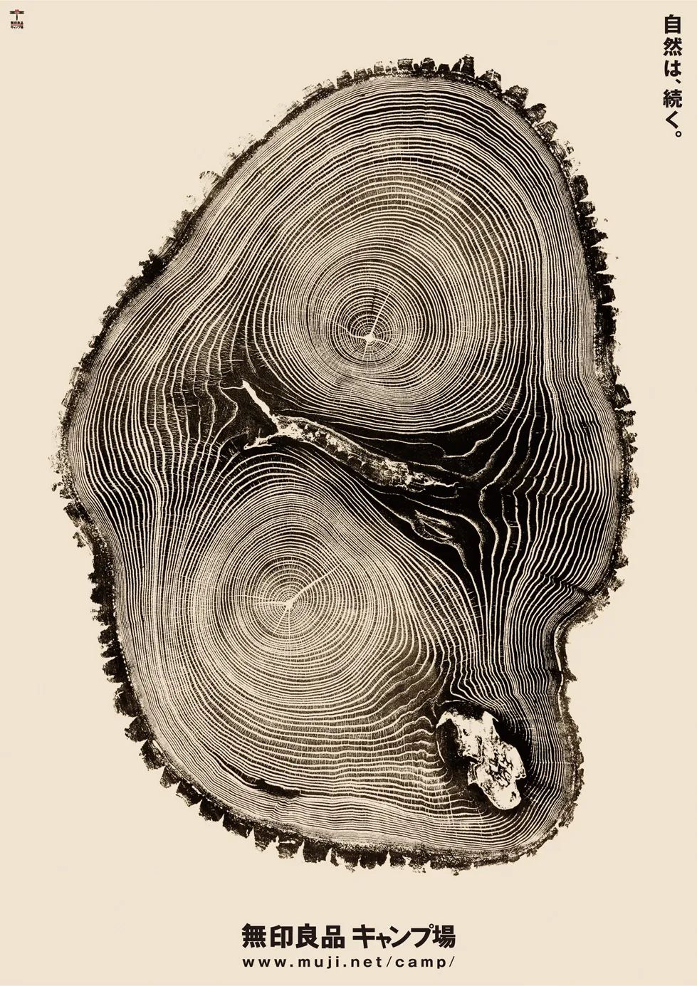 无印良品露营地在2017年迎来了20周年。新村则人就这样一年一年地关注着自然也注视着无印良品的成长。他决定用“年轮”的概念来表达这种自然的生长。图片中木材的截面是美国艺术家Bryan Nash Gill通过一种火烤的手法制作的,每一圈年轮都能呈现出丝丝分明的效果。