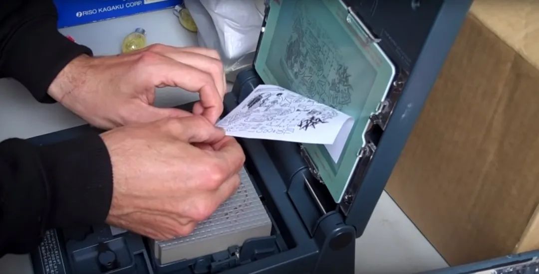 就是这个机器,它每次就只能印图片中的那么一小片,因此一张海报需要由25片拼接而成,如果其中某一片表现得不太理想,整张海报就作废咯。所以仅仅是上面那几幅花朵的海报就尝试制作了100版。过来帮忙的大学生手指头都要折了。