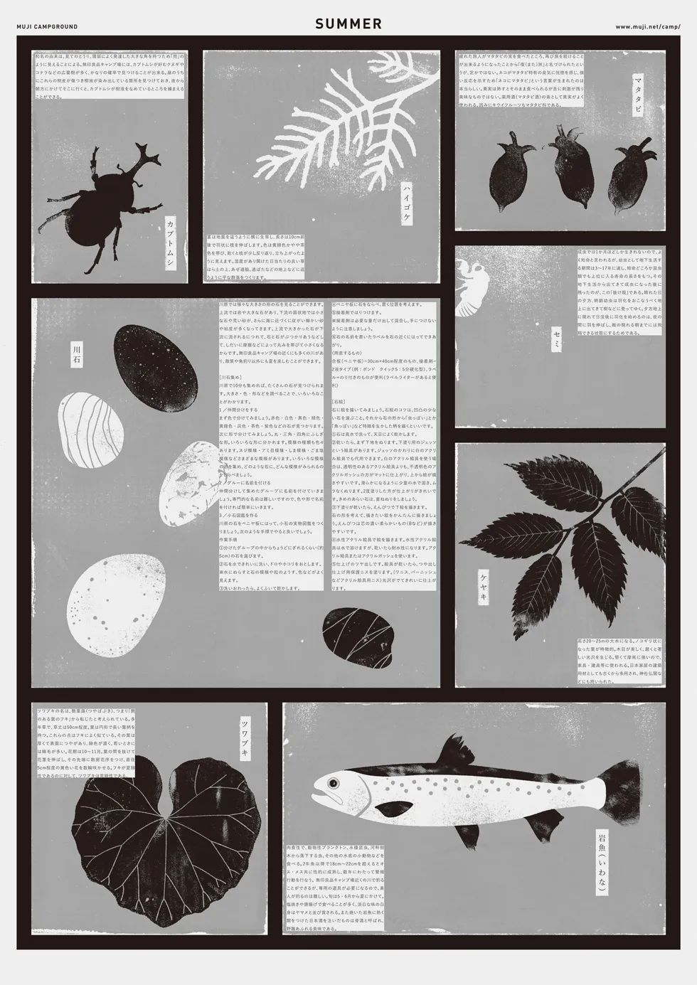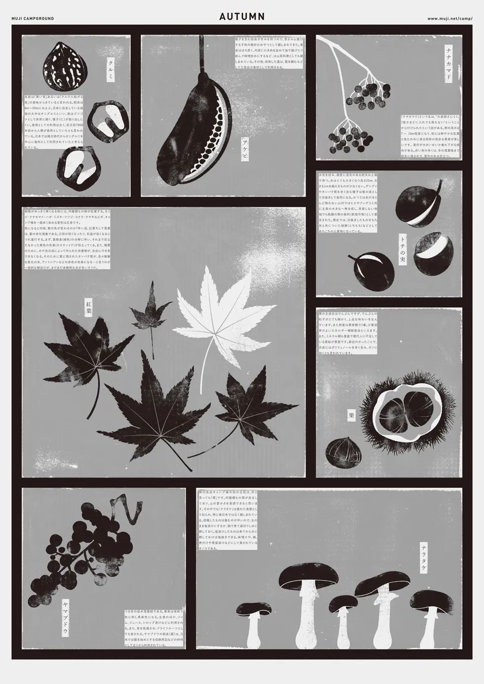 这组海报(2014)的概念是用一个盒子装满露营地一年四季的时令产品,像一个大饭盒一样。你觉得这个项目的重点是什么?新村则人认为“盒子”是本次项目的重中之重,因为这个盒子它必须是什么呢?手——工——的。于是他找到了“箱作家”宇井孝先生来为他量身打造这个盒子。