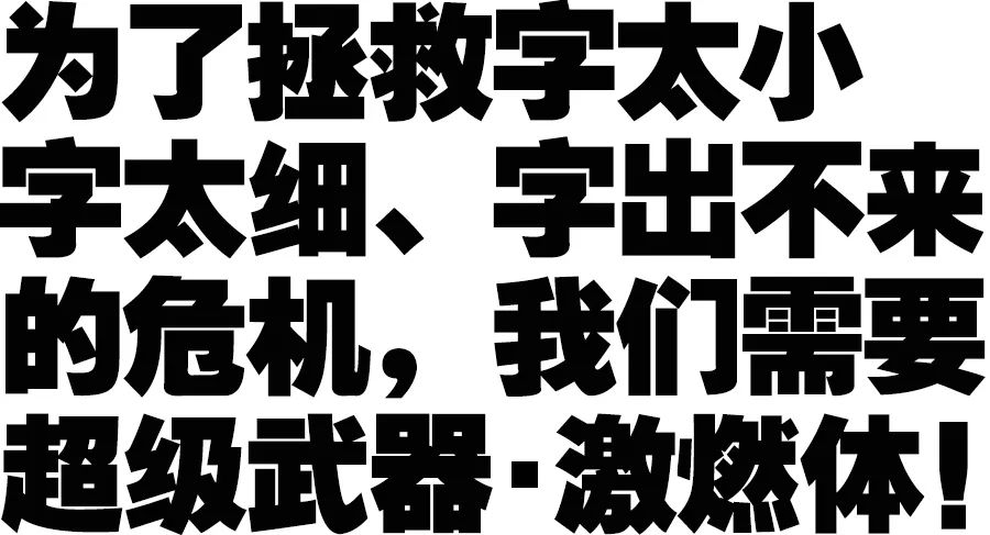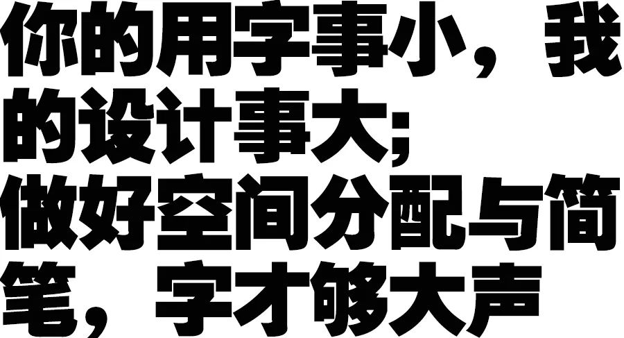 想要大声,唯一的办法就是将笔画放粗、尽可能满框,才能在视觉上造成衝击效果。但想达到最粗最满,同时又要维持字的清晰度、易认度,就需要打破一些既有的逻辑。