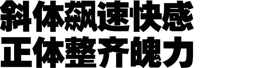抓住目光,没有更简单的方法。倾斜架构、粗壮骨肉,全满爆发的衝撞力道。换激燃体,让广告素材、包装设计一看就生火。