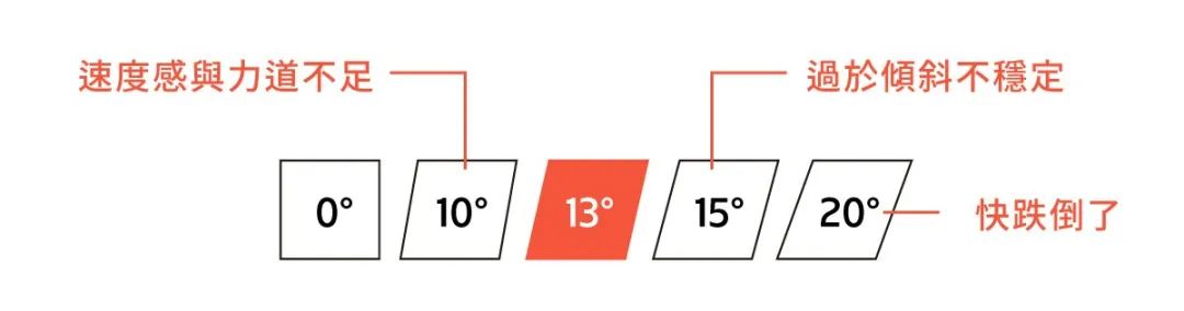 激燃体的斜体是特殊设计呈13°倾斜,而不是几何转斜。直接透过机械方式将正体转为斜体很轻松,但容易让粗细比例失衡。林芳平为了创造品质良好的中文斜体,手工逐字细调,这也将会是第一个商用的中文斜体喔~