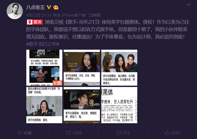 这几天《歌手当打之年》侵权美字社颜黑体的事,相信大家都有所耳闻。