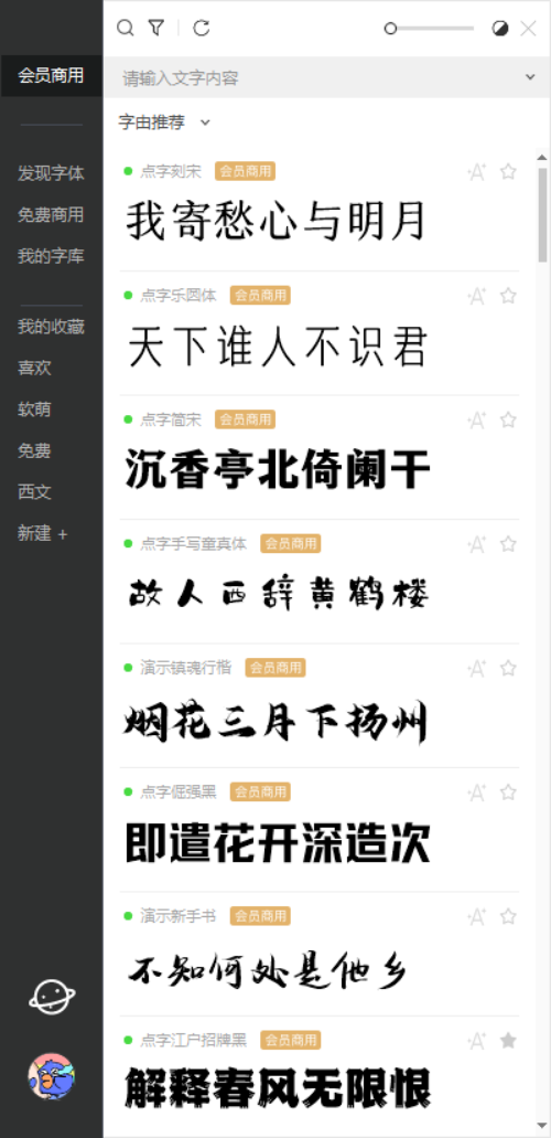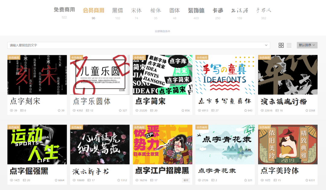 只要你购买了会员,就可以在有效期内畅享96款商用字体,认准金色标签(非字由全网字体)。