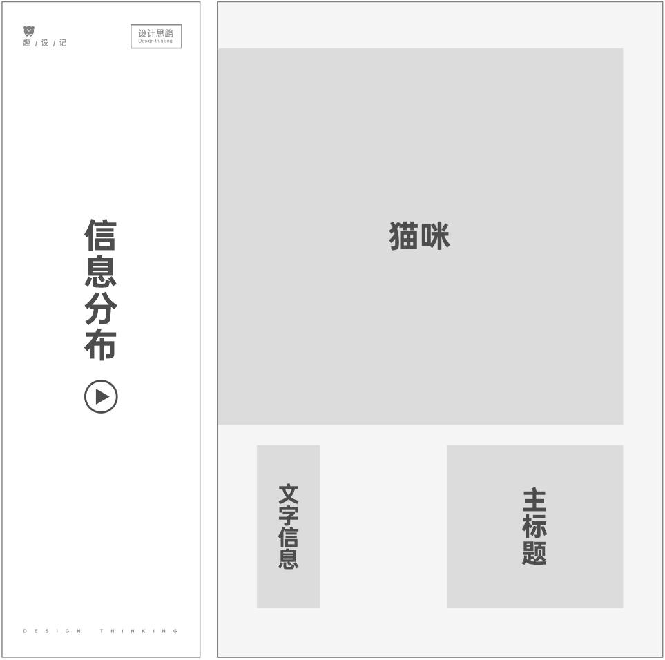 这次主要以版式设计为主,留白相应的会比较多。构图上我们采用上下分割,猫咪的照片放到上方位置,下面放主要信息,先简单的画出每个信息的位置。