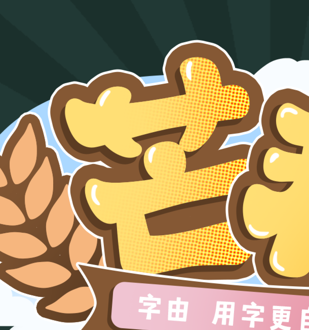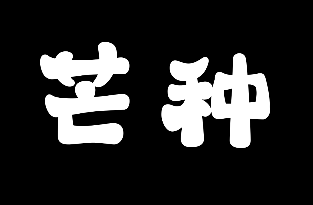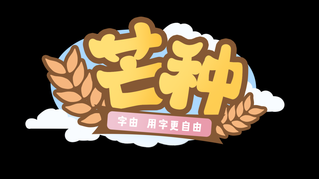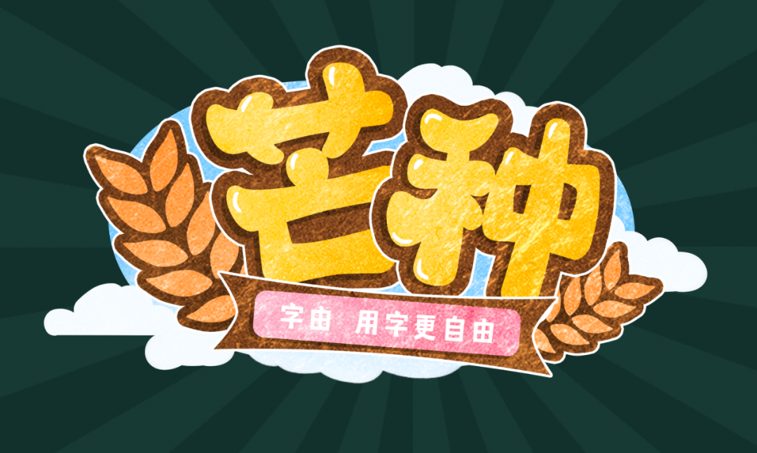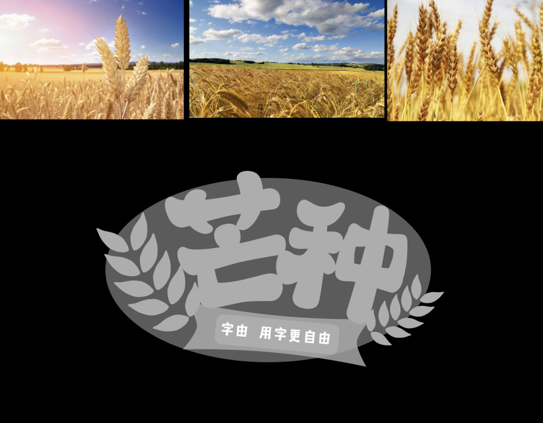 因为芒种取意“忙种”,要种水稻嘛,所以标题字要体现那种鼓囊囊麦粒的感觉,点字QQ糖这款字就非常合适~