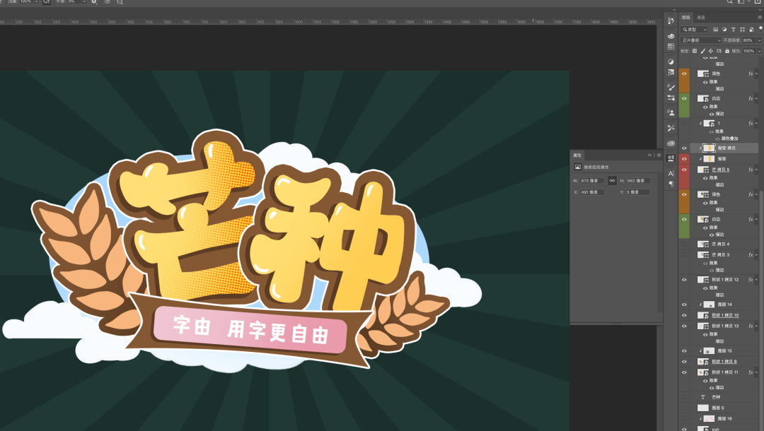 先确定构图,倾斜一下字体,再将麦穗元素添进画面。