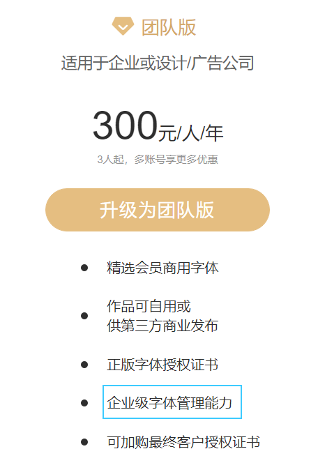 那企业字库就是升级版,方便公司管理商用授权的字体(不局限于字由平台),明白?