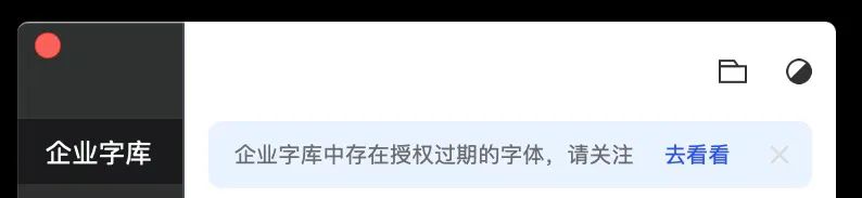 如果有字体超出了授权的有效期,则不会出现在企业字库的界面中,客户端顶部也会提示。