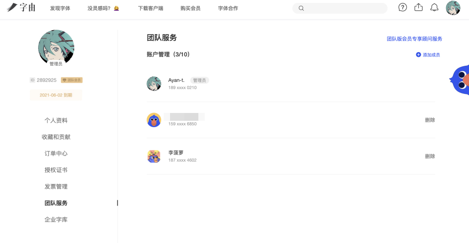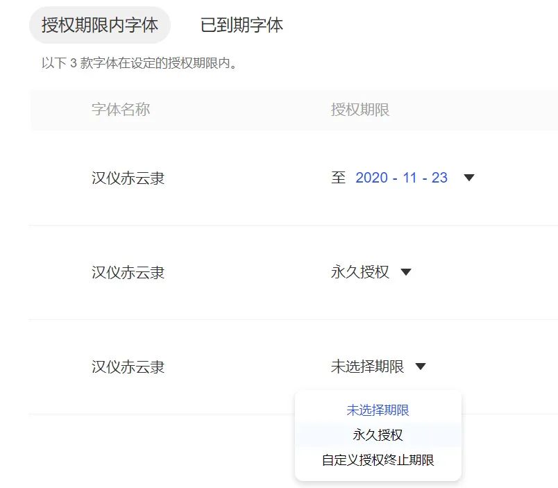 然后团队成员就能看到这款字体的授权期限了。
