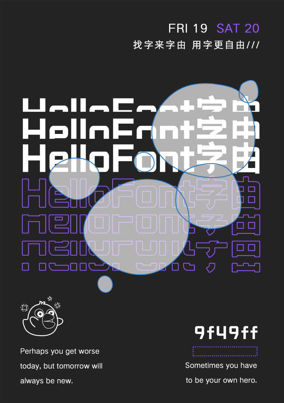 首先分割排版一张文字海报,此处用到的字体是字由文艺黑和点字典黑。
