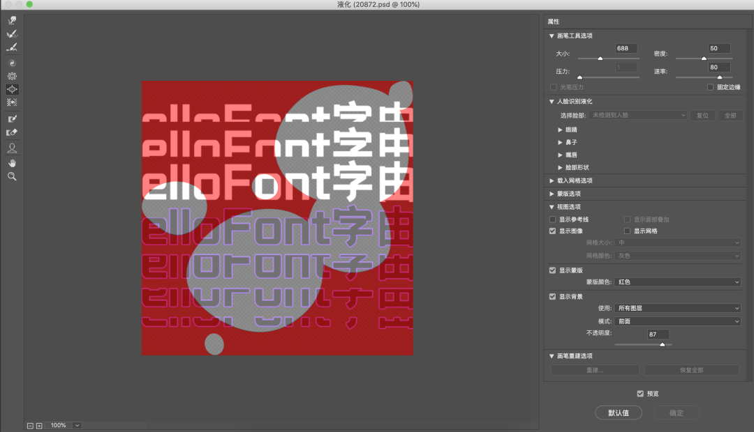 选择原来的背景图层,ctrl+鼠标左键,选择水珠图层的选区,进入液化模式。