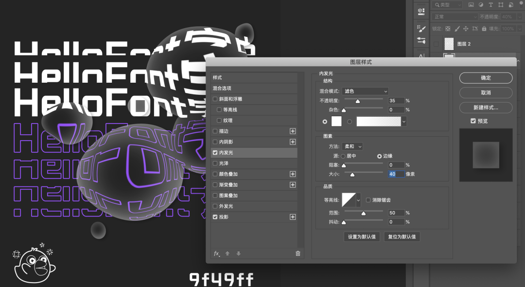选择水珠图层,将填充设置为否,并双击图层进入图层样式,将参数设置为如下图(可自行调整)。