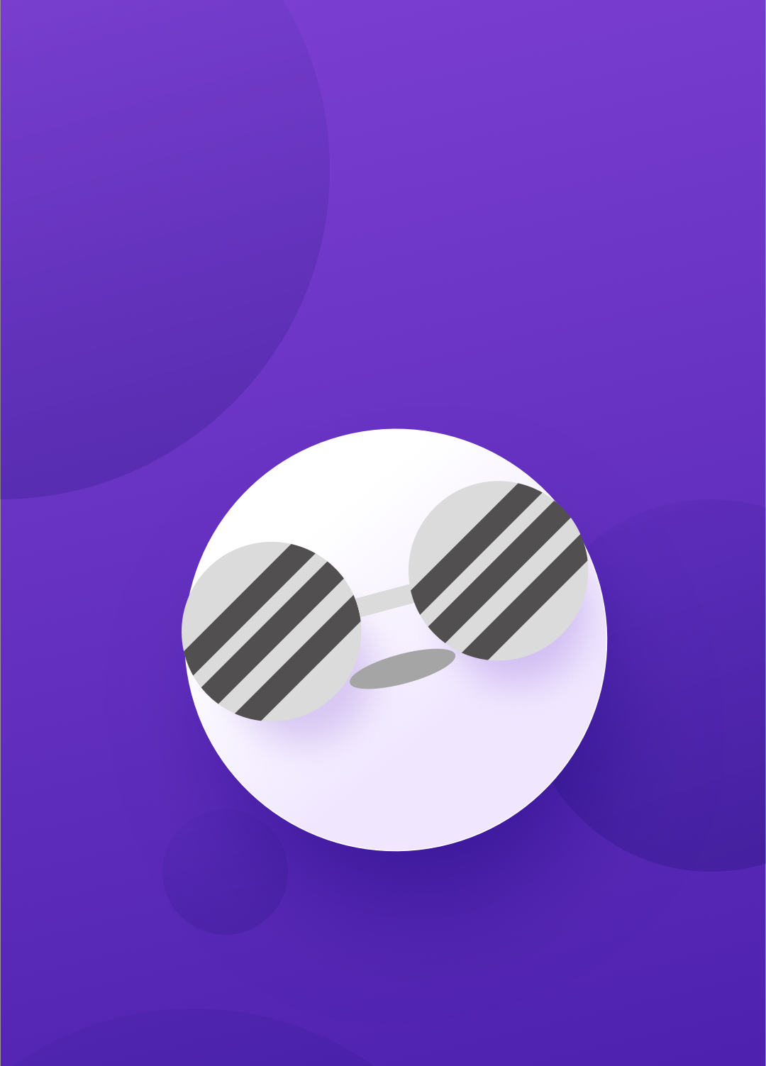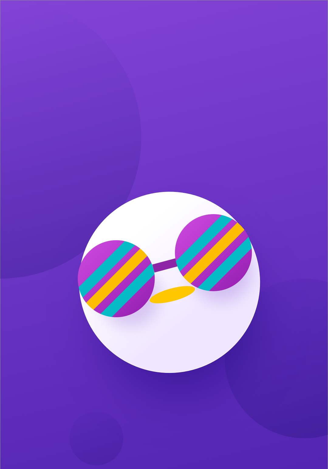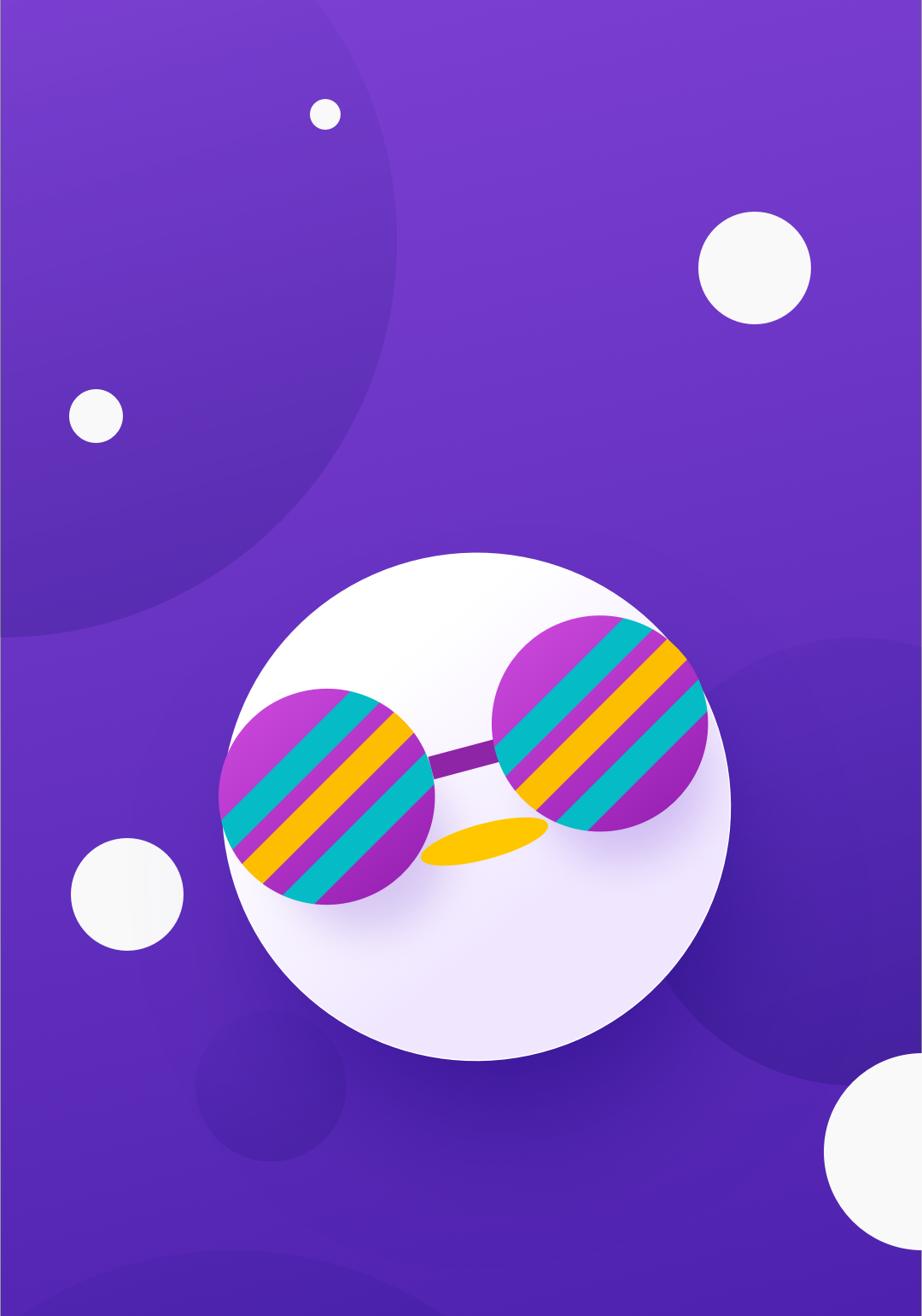 我们会发现,很多作品的颜色搭配,都不仅仅只是用了彩色,还用了一些无彩色,比如黑白灰、肉色等等,这样可以一定程度上的中和彩色,并且丰富层次。比如我们在刚才的主色背景上加一个小形象,先用一个白球占位,白色就是无彩色: