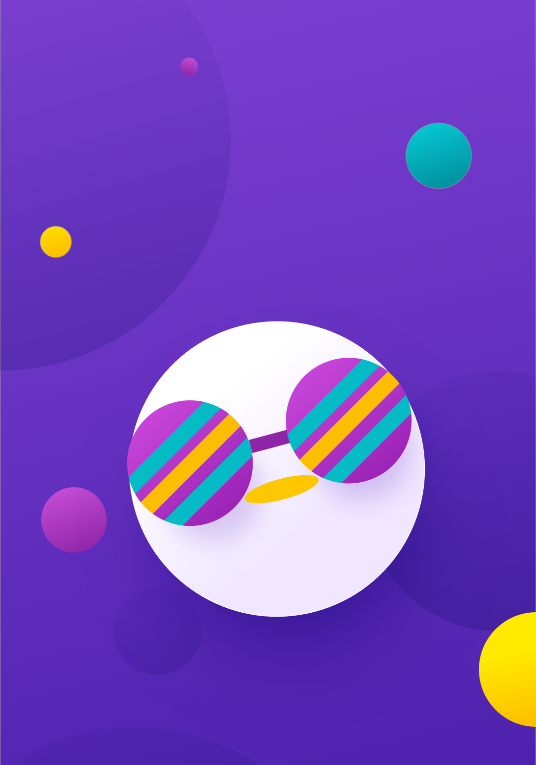 这里就是我经常强调的颜色呼应,这些点缀元素就完全可以继续使用辅助色,也就是眼镜上的颜色:到此,一个简单的小画面就出来了,我们再加上一些小文案,大概效果如下: