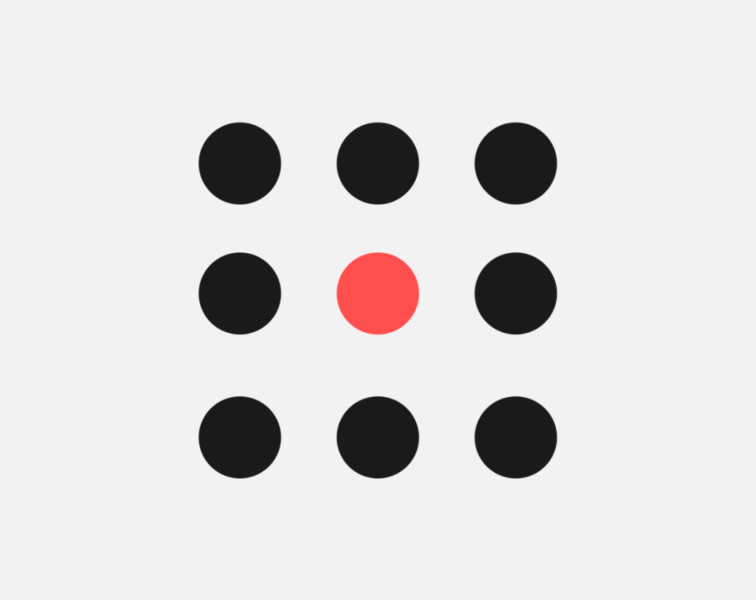 不管是通过大小、长短、粗细、形态、色彩、形态等等不同的表现手法,都要确保能形成明显的视觉差异化,让元素之间互为参照物,举个简单的例子:很显然,红色色块更吸引人的眼球,也更容易引起注意,因为周围黑色色块都很雷同,没有明显的视觉冲突,而相反,红色色块与其他元素不同,差异化很强烈,所以这就是通过色彩对比的表现形式突出了主体。这里不得不提格式塔原理:人类会无意识之中,把相同形状或形状、形态相似的物品看做一个整体。对比就是利用了这个原理,制造视觉差异化,突出你想突出的视觉元素。