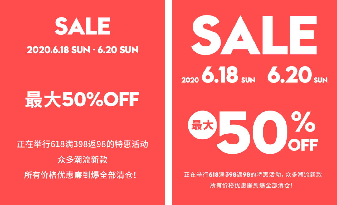 通过色彩对比,重点主体得到了凸显,其他视觉元素保持了相对统一,这就是对比最基本的作用。同样适用于其他表现形式:大小、促销、长短、虚实……