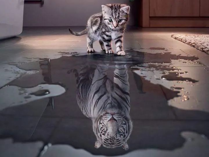 如图所示,案例通过颜色对比的形式,即冷暖色对比,加强了作品整体的氛围感和视觉冲击力,也正因如此,使得作品给人的视觉感受更加立体。对比无处不在,往往一些很有意思的创意都来源于对比手法,只是呈现形式有所不同而已,比如:猫与虎在形态上形成了强烈的对比,作品给人的感受有趣、新颖,这就是对比所带来的氛围感受。