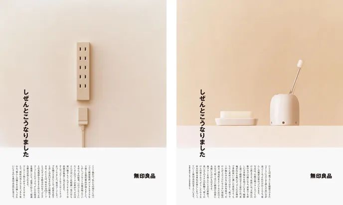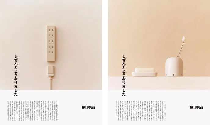 在MUJI的其它品牌资料中,我们也可以看到大量对留白美学的应用。