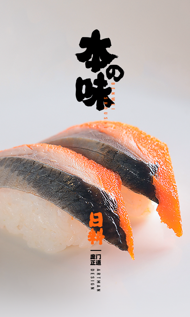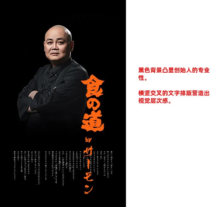 以居中的方式排版好文案,字体上选择具有日本风格的手写体,视觉上很有分量感, 能镇住画面。