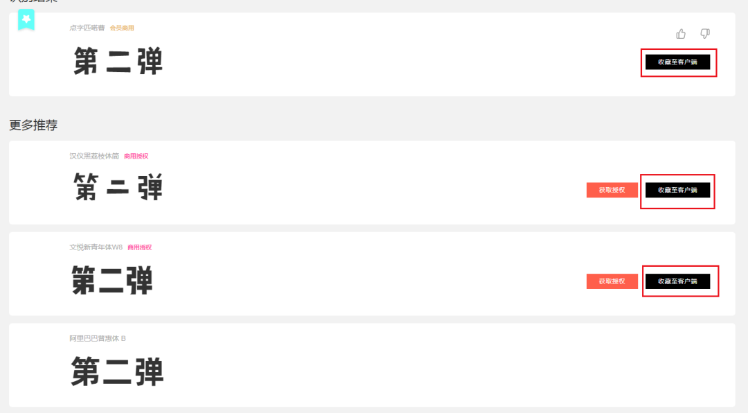 除了识别结果,往下拉还会看到相近的字体,如果字由平台有收录,直接收藏至客户端就可以。