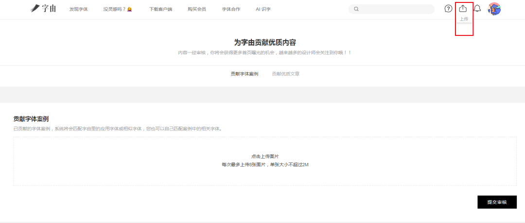 手机也可以,进入字由服务号,选择涨字识了>上传案例。