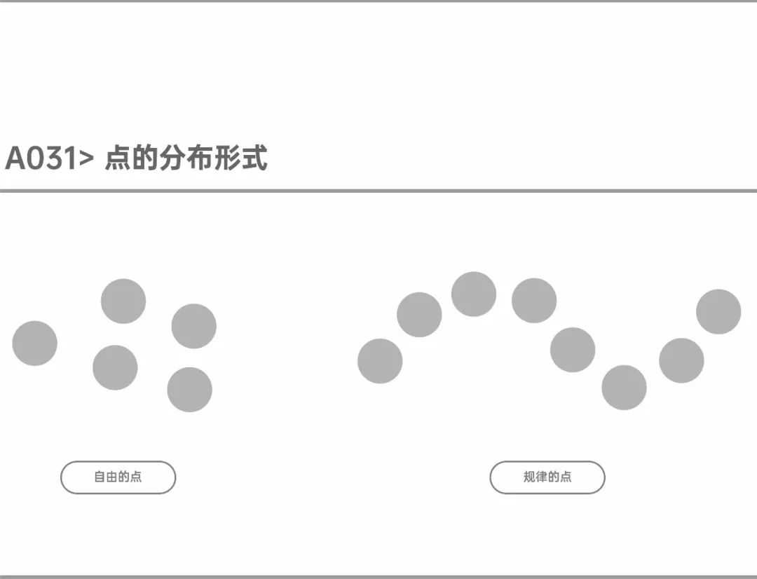 点的分布形式大体上分为自由的点与规律的点,自由的点在分布位置上没有具体的方位,随性自由,在画面中更能体现氛围性。而规律的点在分布位置上一般都趋于某一个具体的形状,有一定的轨迹可寻,比较规范。