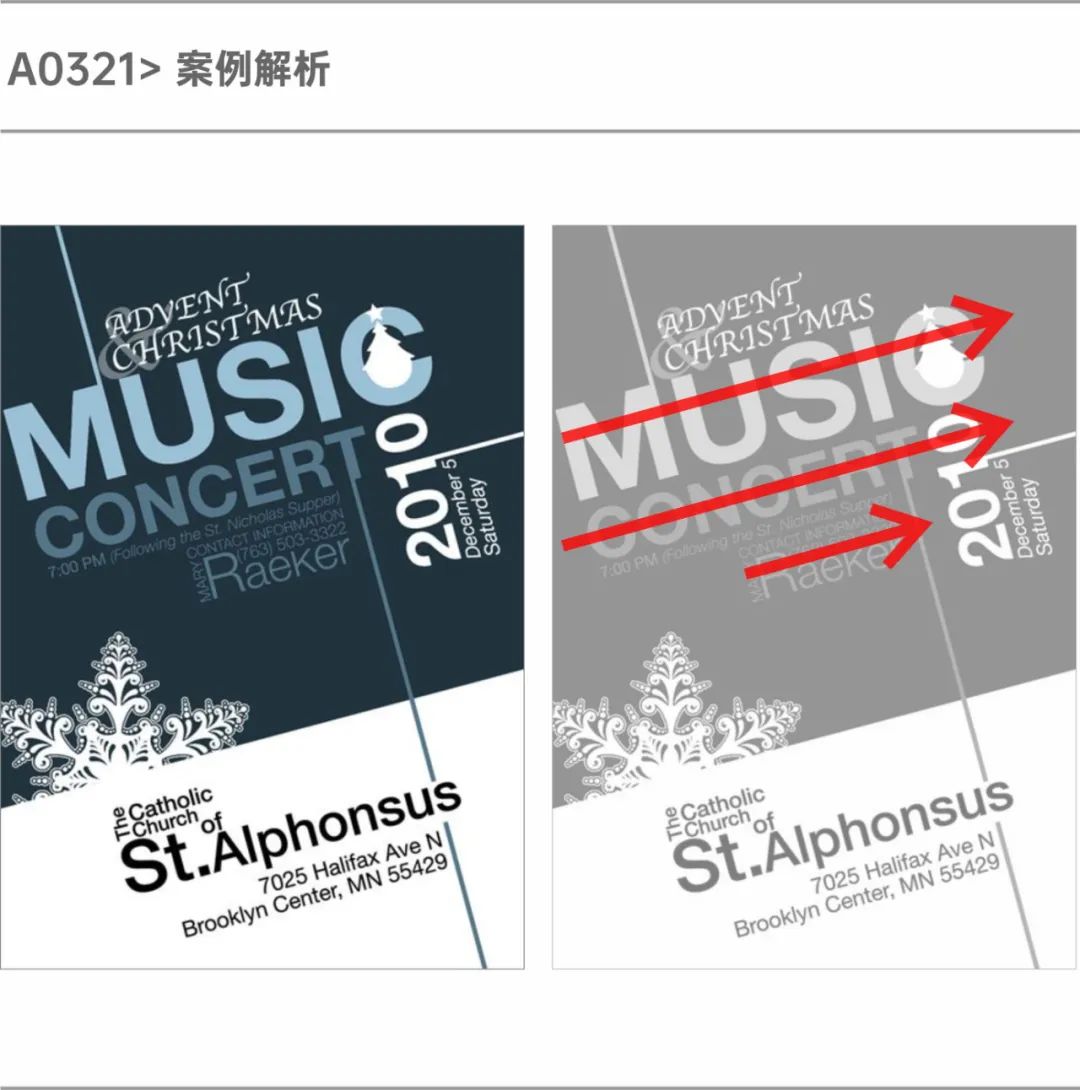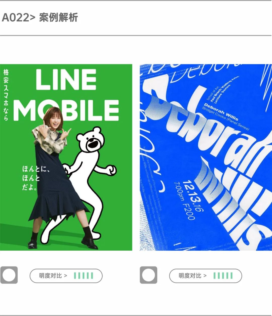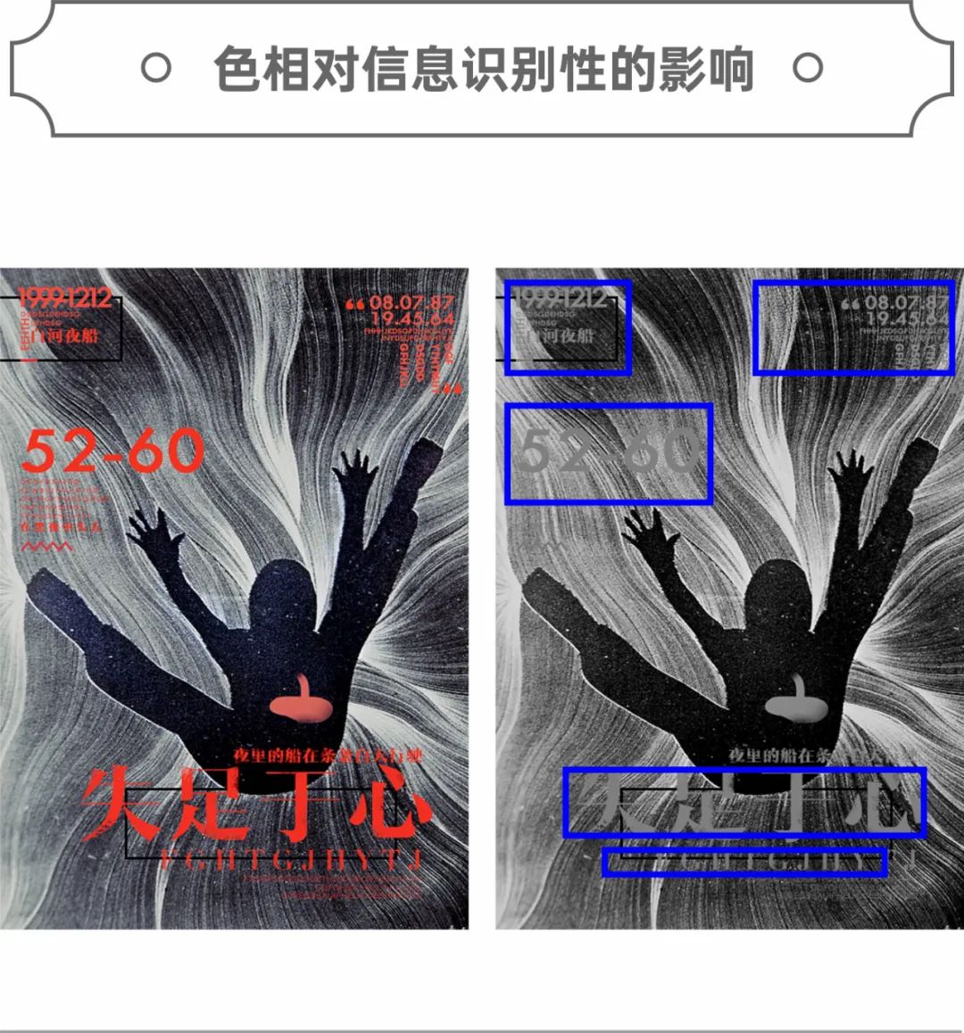 除了不同信息之间的叠压,直接影响文字信息的识别性之外,明度上的影响也是比较大的。