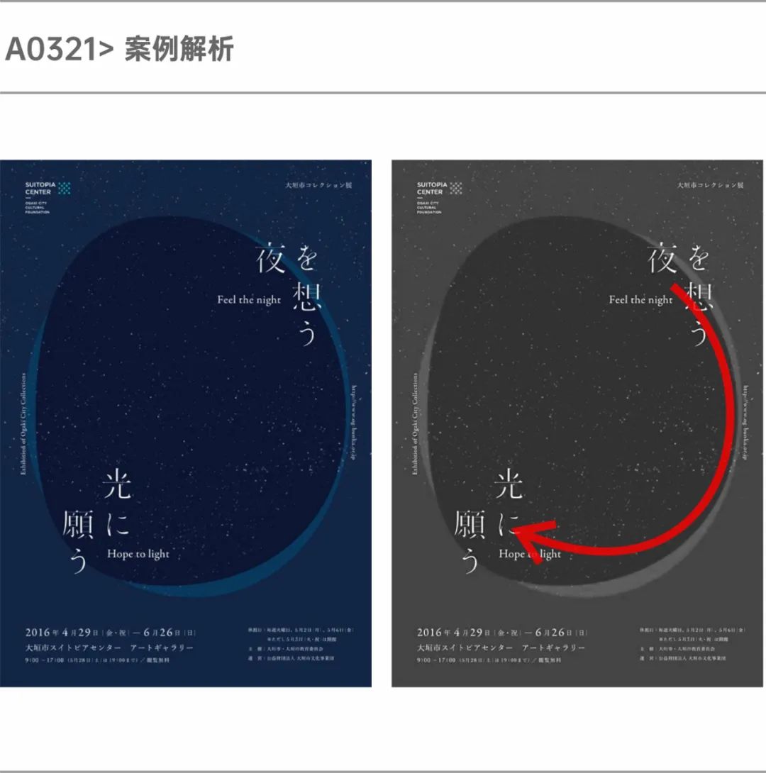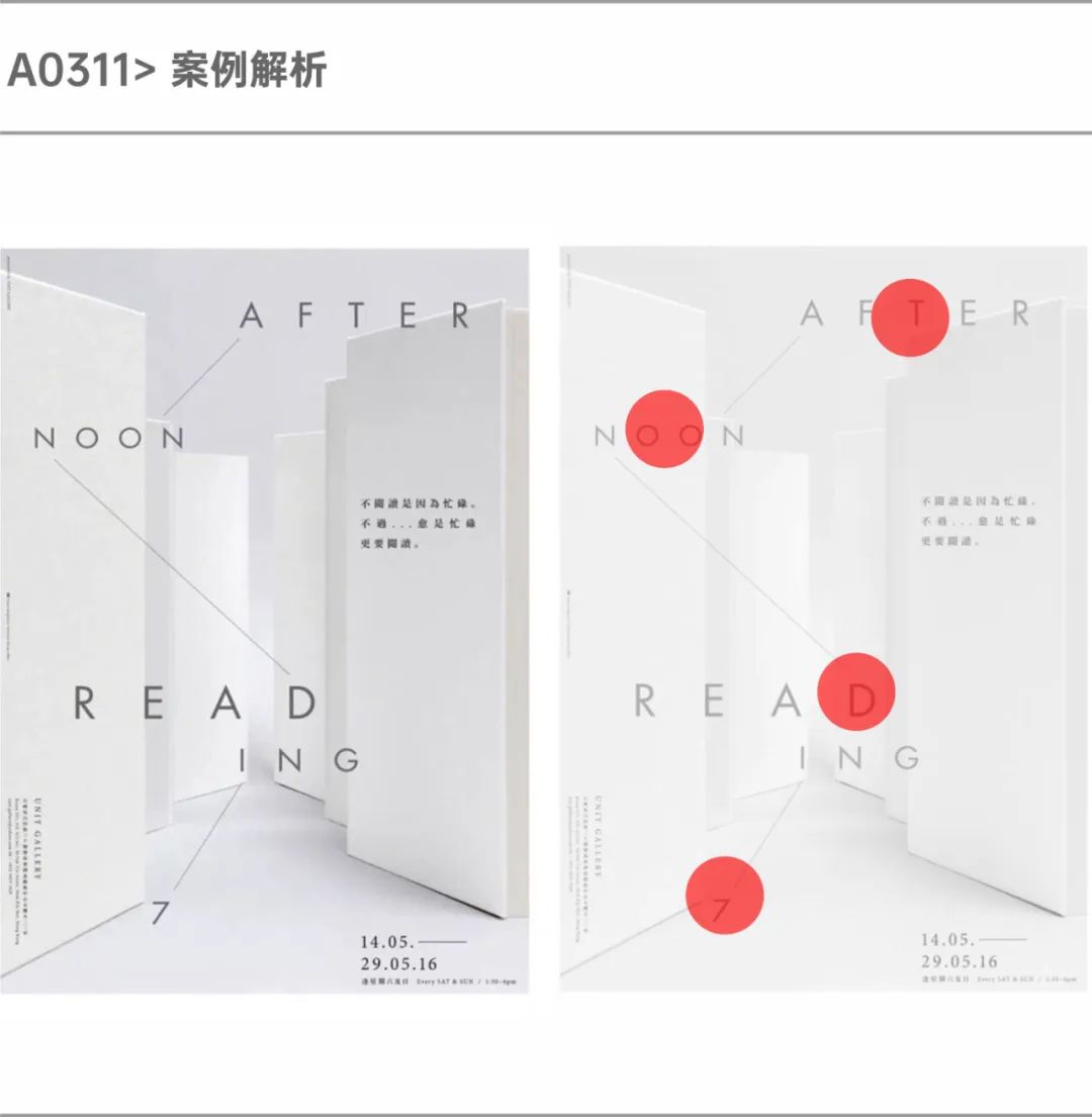 主标题的分布形式,主体的分布形式以及核心辅助要素的分布形式,都会影响到信息的识别性,从而推出分布形式与项目调性之间的关系。