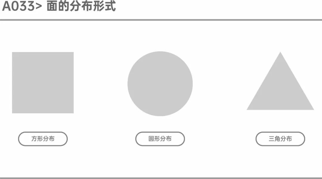 面相对于点与线来说,是视觉性最强的,通过调整文字信息的字距,将文字的分布形式趋向于面,或者通过添加色块达到面的形式,大体上分为方形,圆形与三角形,三种不同的形态,传达的情感也不尽相同。