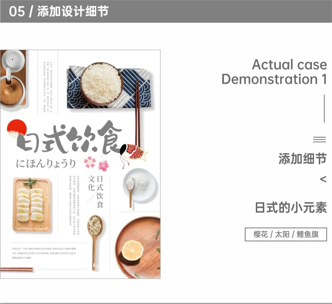 这个项目的主题是日式饮食,提到日式文化很容易联想到的就是手工感,格调感与温度感,所以字体选用手写体,构图上体现格调感。