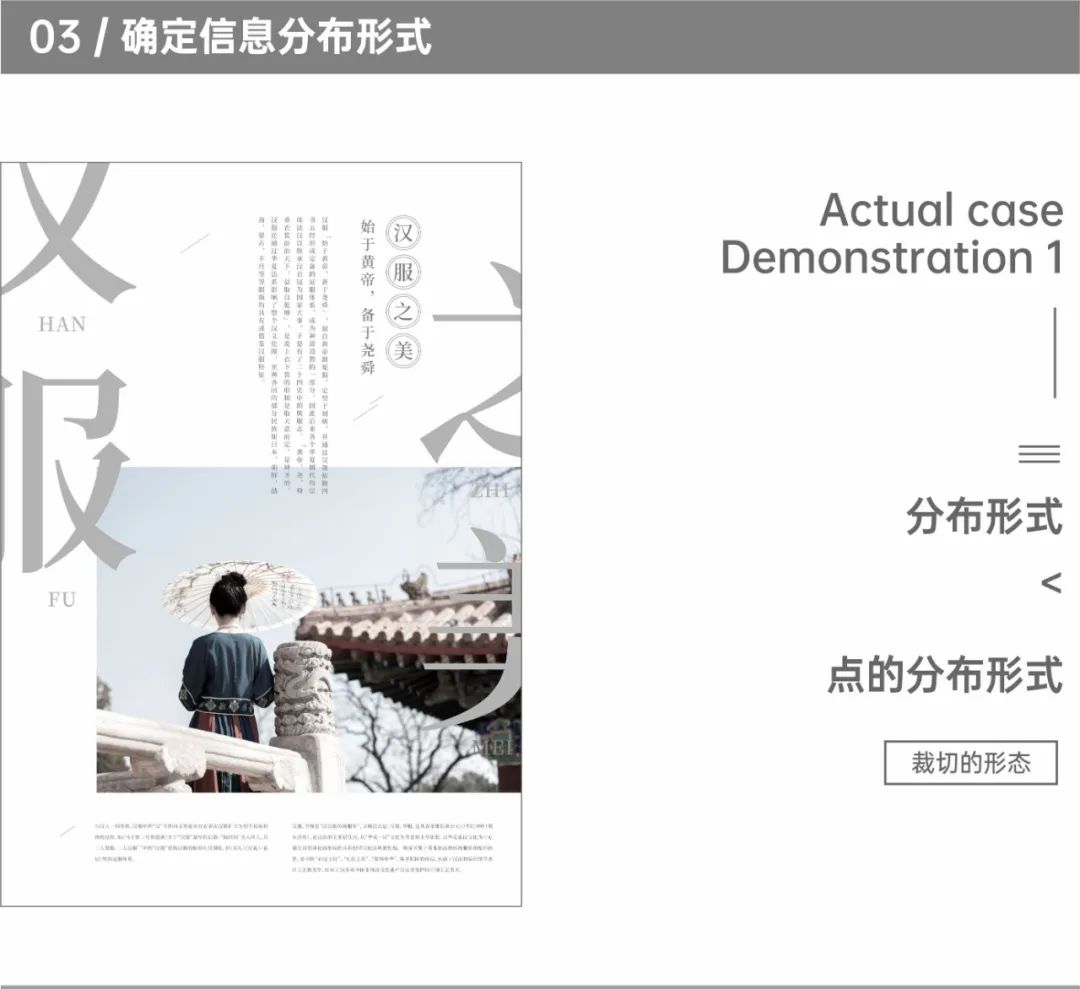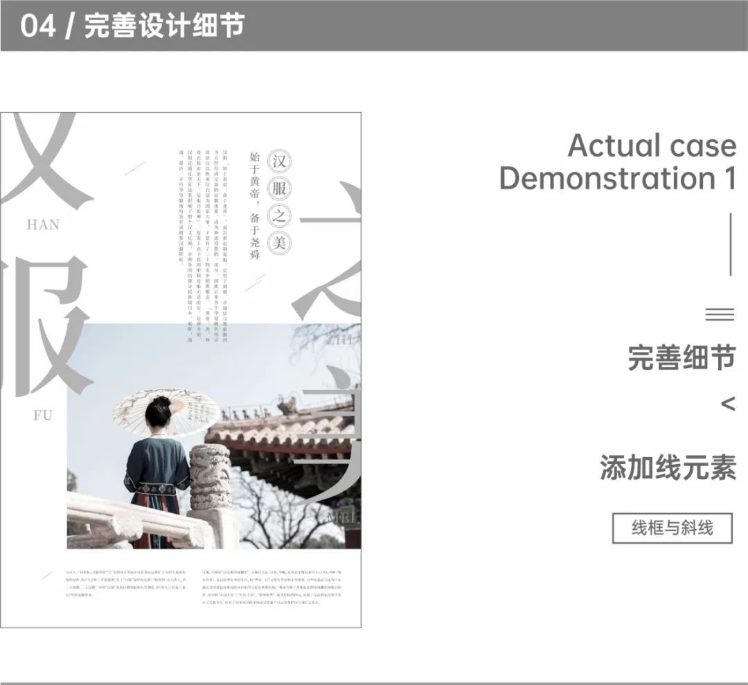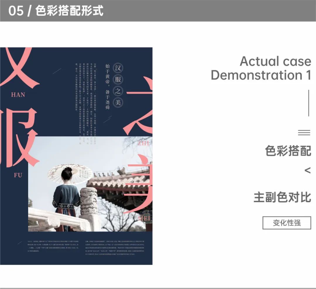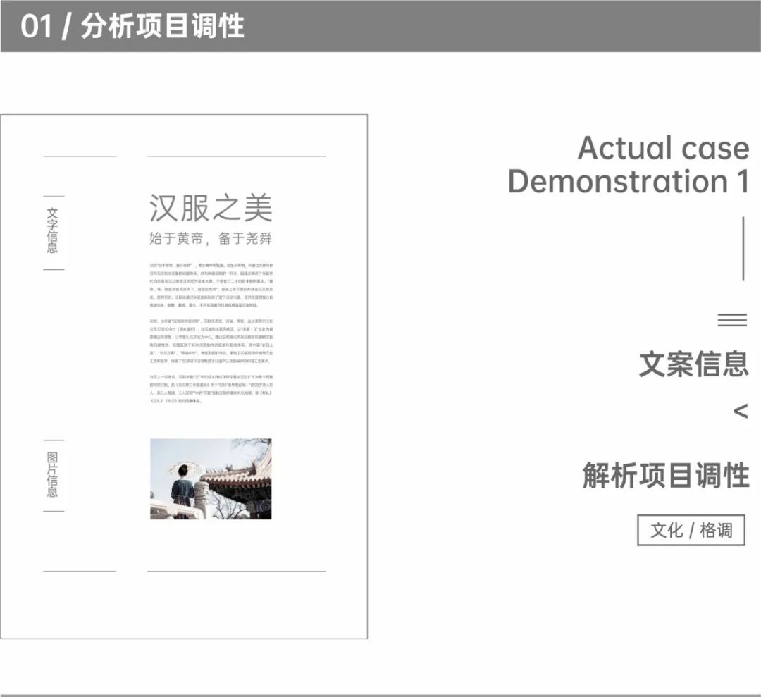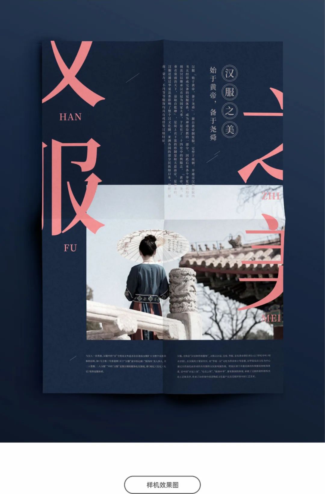 这个项目的主题是汉服之美,气质就偏汉文化与格调感,使用上以宋体与书法体为主,宋体更加雅致,书法体更偏飘逸,留白的空间可以更大。