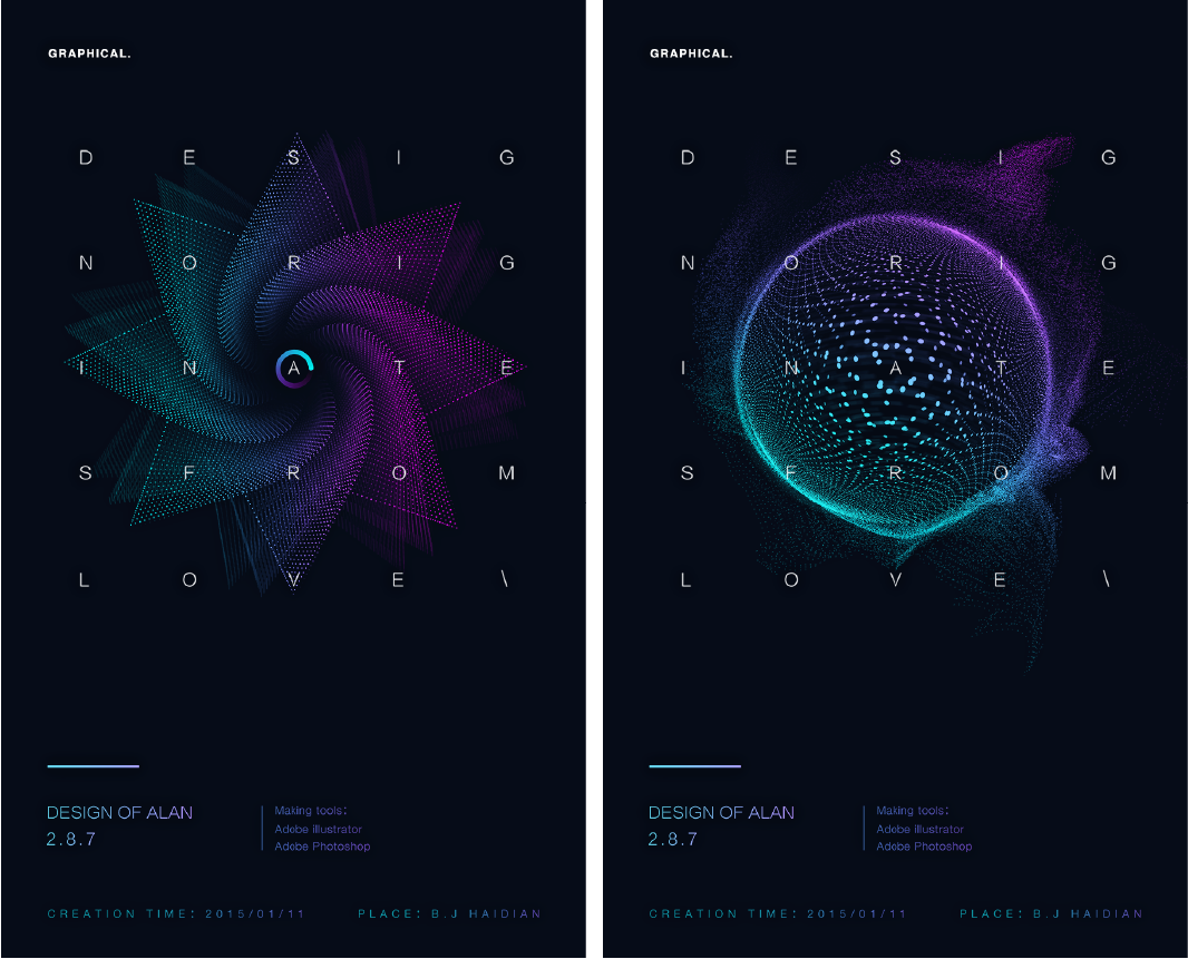 添加点元素作为背景纹理,并加入黑白渐变色增加质感和层次,点状背景很好地填补了版面空白。